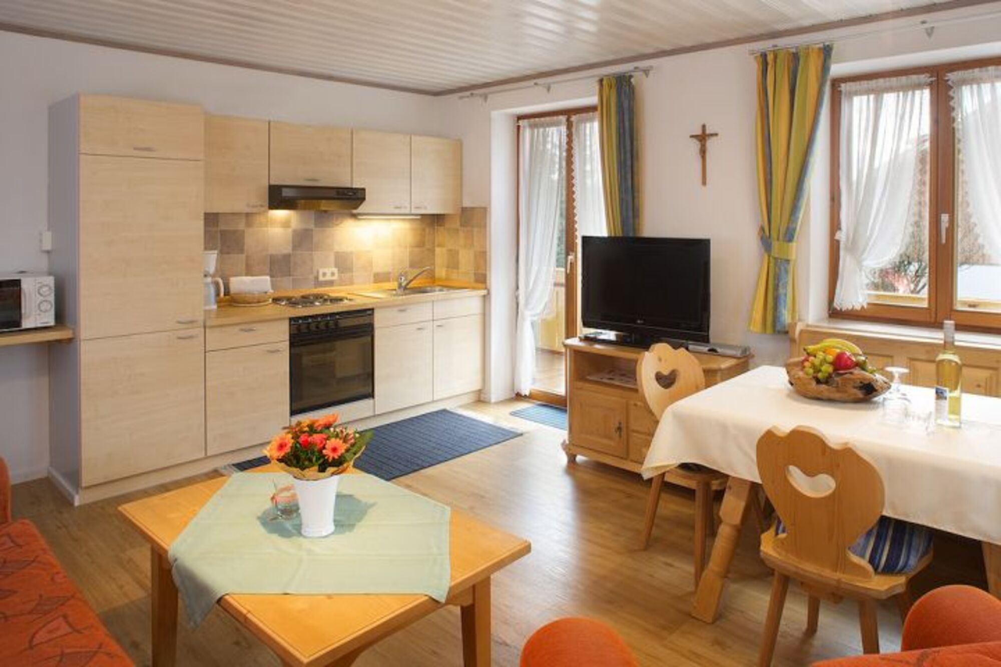 Im Landhaus Ohnesorg wird Ihr Urlaub zum entspannten und unvergesslichen Erlebnis im Allgäu. Das Landhaus Ohnesorg liegt sonnig und ruhig, abseits vom Alltagstrubel, mit Aussicht auf die Voralpen und unseren Hausberg, die „Alpspitze, der mit seiner Kombibahn zum Wandern und Skifahren sowie zur Fahrt mit dem Alpspitz-Coaster und der Winterrodelbahn lockt.Die geräumigen und hellen 3 Zimmer Ferienwohnungen wurden mit allem ausgestattet, was Sie für Ihren entspannten und sorglosen Urlaub benötigen. Jede Ferienwohnung hat 2 Schlafzimmer, Wohnzimmer mit Küchenzeile, Dusche/WC und einen Balkon. Für Kinder gibt es zahlreiche Spielmöglichkeiten, Reisebett, Hochstuhl und Windeleimer.