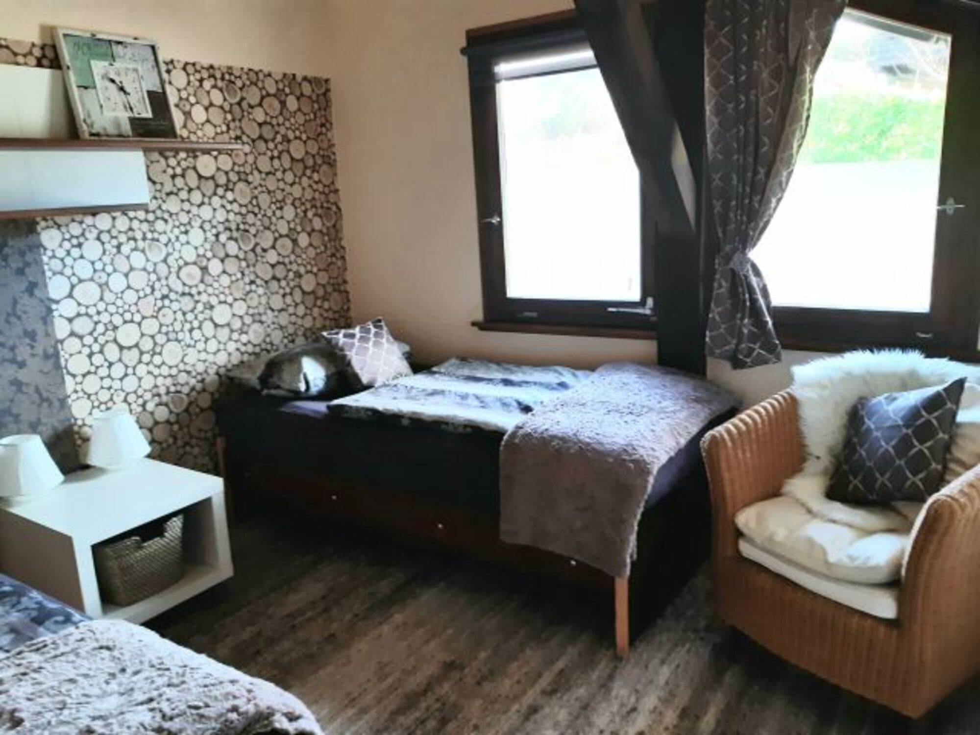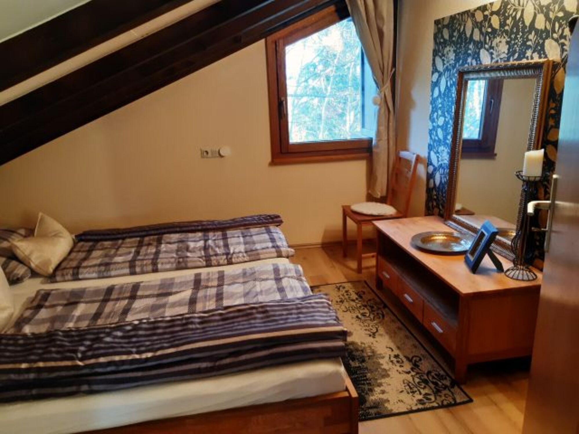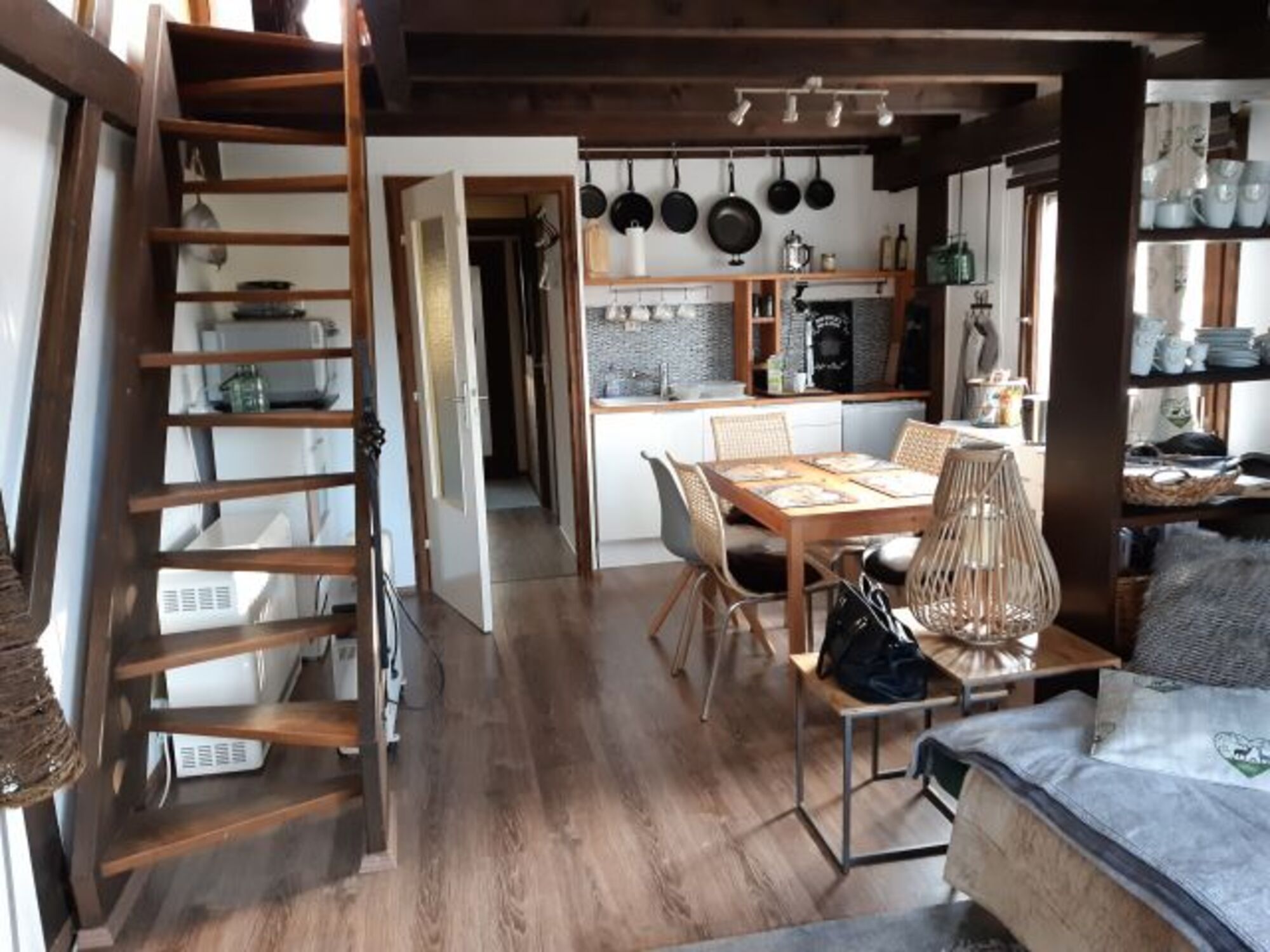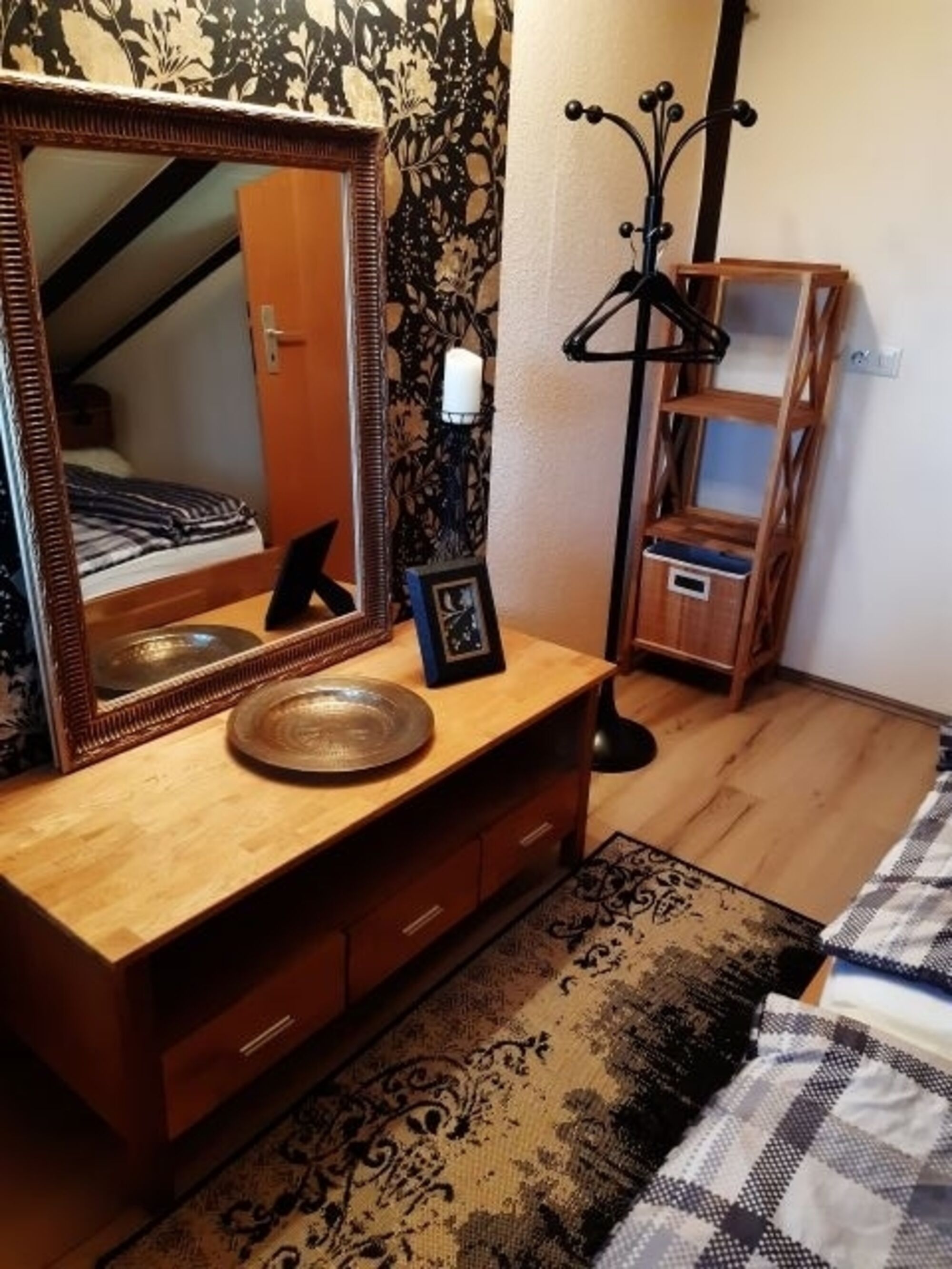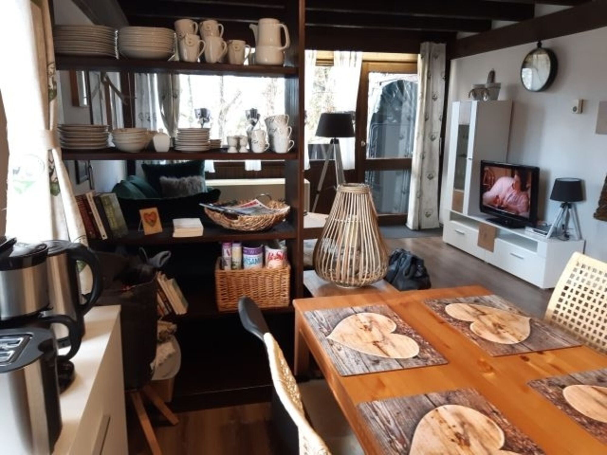 Die ca. 62 m² große Ferienwohnung ist in einem Holzhaus direkt am Waldrand des Ferienparks Vorauf gelegen. Der Parkplatz liegt ca. 200 m bis 400 m vom Haus entfernt. Sie können jedoch vor dem Haus Ihre Einkäufe, Ihr Gepäck be- und entladen. Die Ferienwohnung wurde 2015 renoviert. Der Eingang und die Wohnung ist nicht barrierefrei. Das EG hat eine kleine Terrasse vor dem Eingangsbereich mit Sitzgelegenheiten. Im EG ist der Flur mit Garderobe, Bad/WC und eine Wohnküche und einen großen Balkon. Die Wohnung ist mit "ländlich-modernen" Möbeln eingerichtet. Sie erreichen das Obergeschoß über eine rustikale Holztreppe. Dort finden Sie 1 Schlafzimmer (Doppelbett 2mx2m) und 1 Schlafzimmer mit 2 Einzelbetten ( 0,90mx2m). Im Zwischengang befindet sich auch eine Schlafliege.Urlaubsarten: