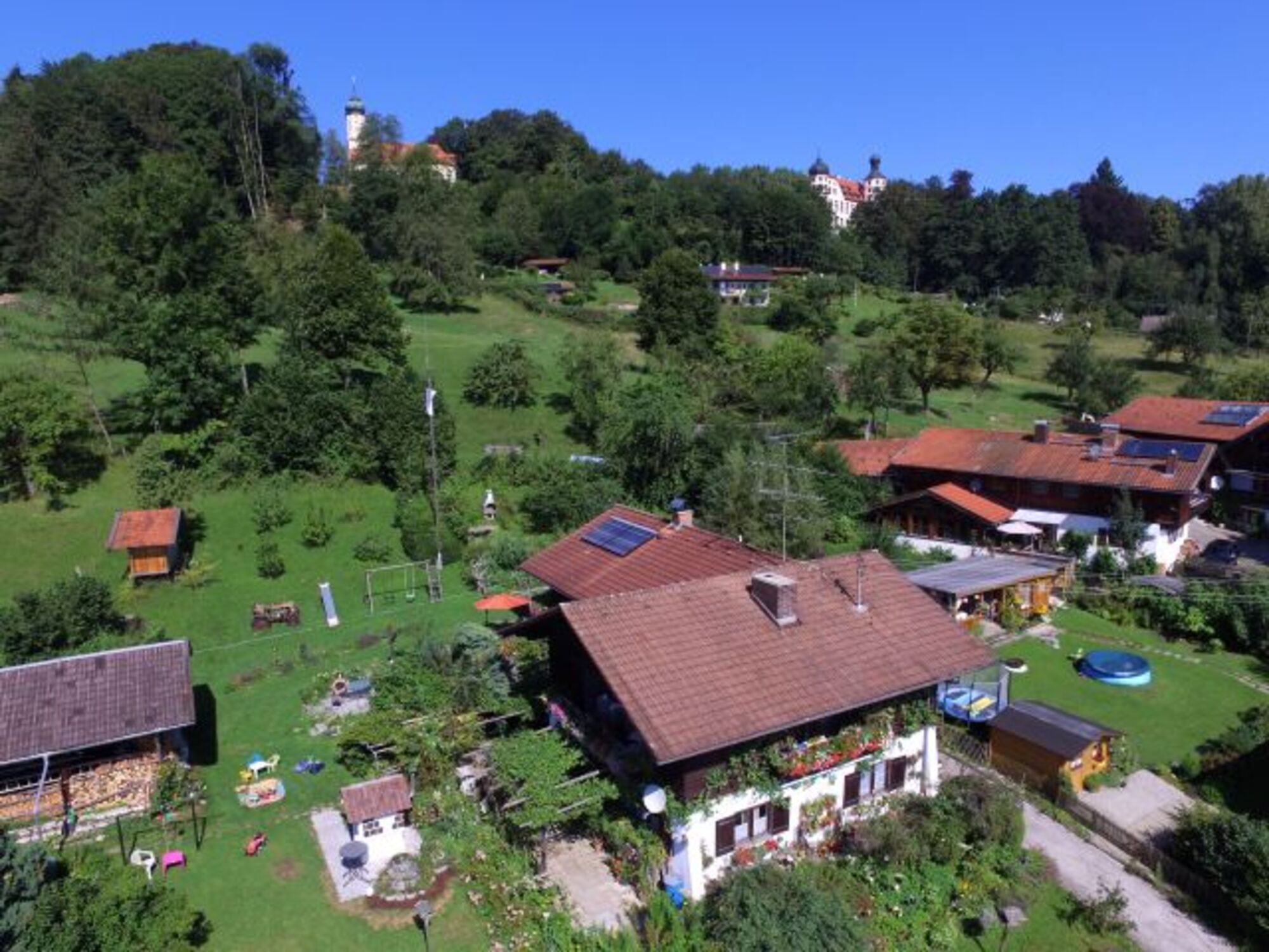 Unsere großzügige Ferienwohnung liegt im Zentrum von Eurasburg. Genießen Sie aber die ruhige Lage mit Natur pur. Erholen Sie sich in unserem vielfältig angelegten Garten unter Obstbäumen, oder zwischen den farbenprächtigen Blumen und zahlreichen Kräutern, selbst Weinlese ist möglich.Unsere Haustiere wie Katzen, Schafe und Ziegen lassen sich gerne von Ihnen streichelnund füttern.
