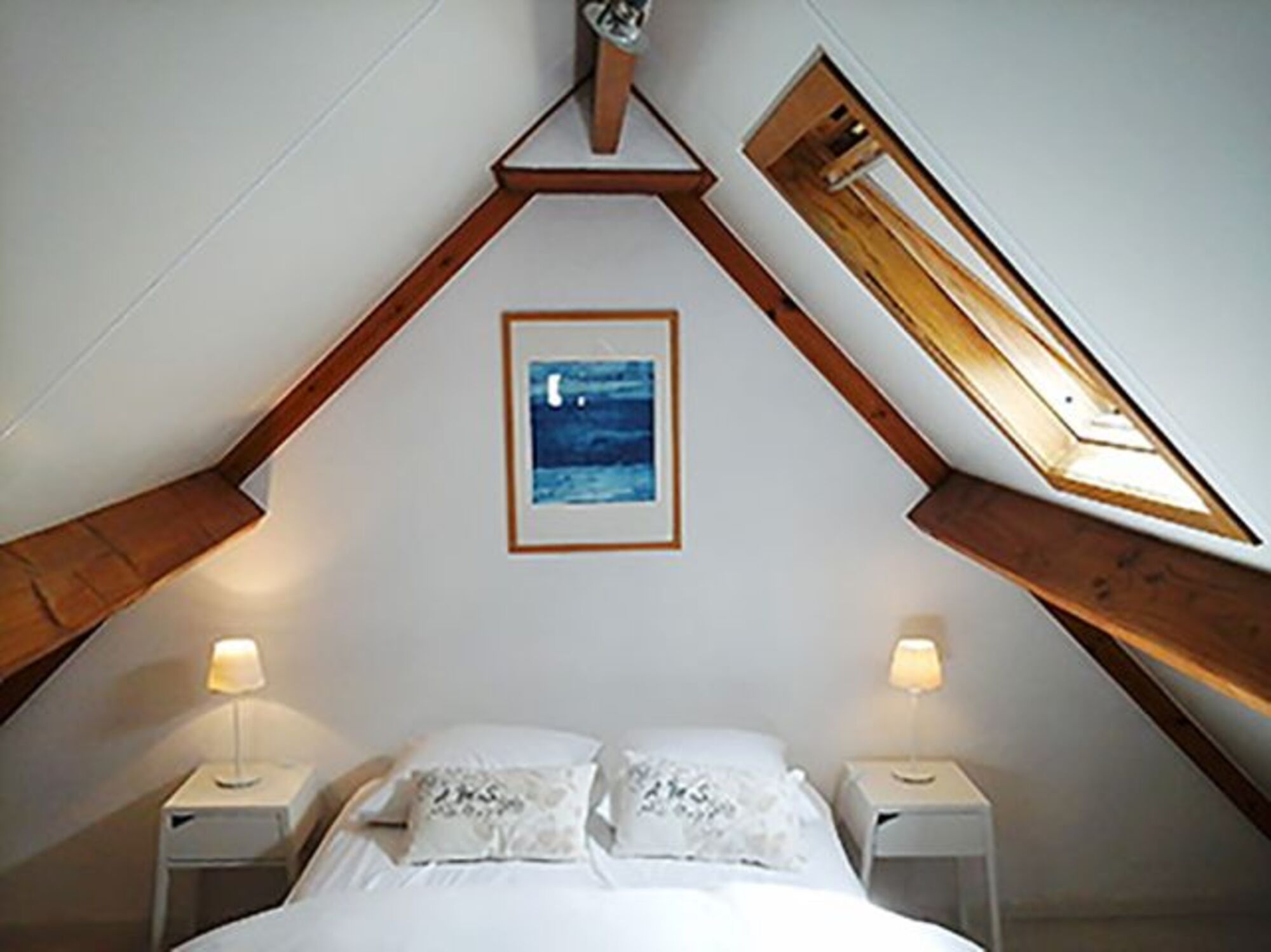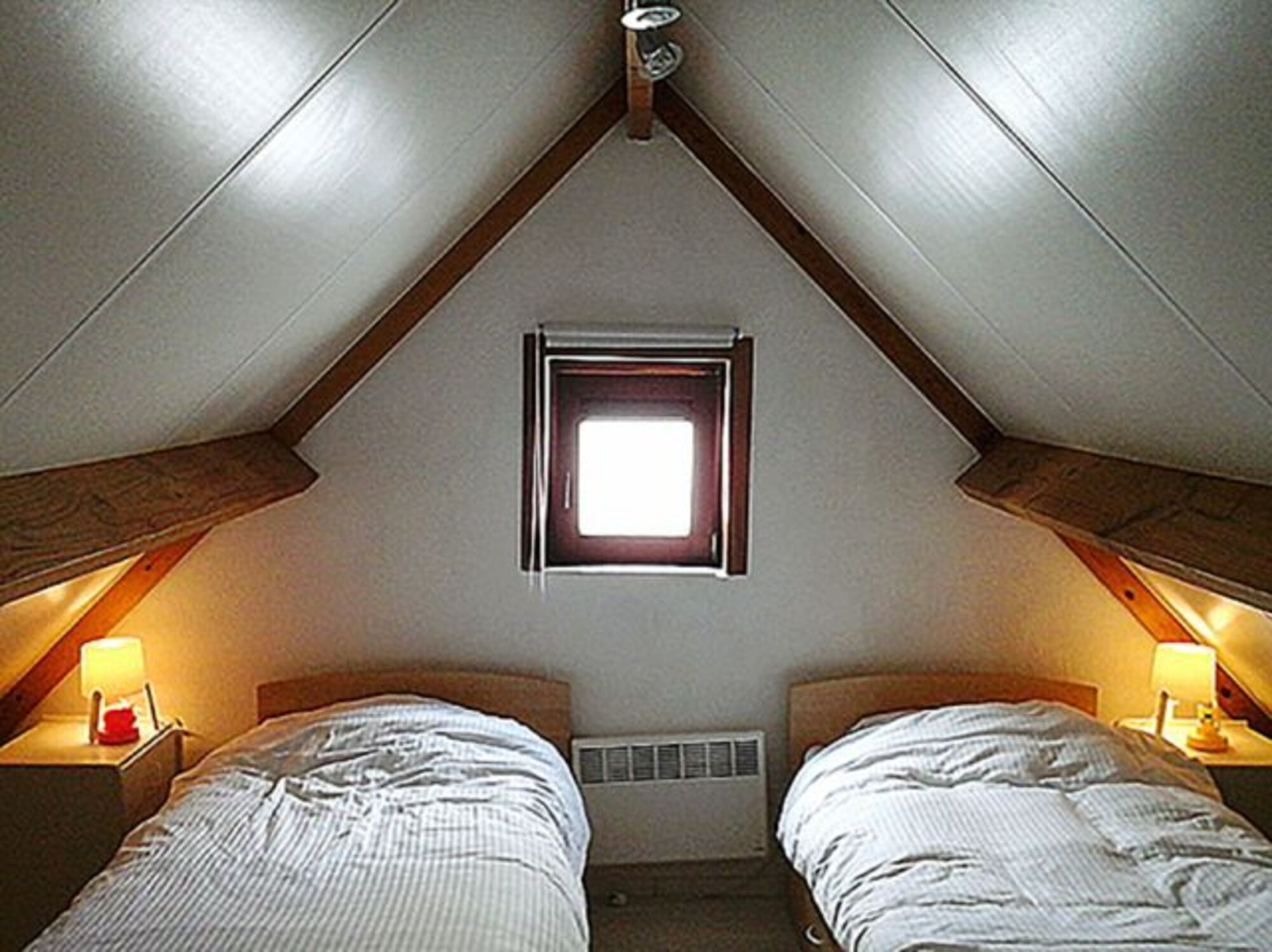 Da gibt 3 Schlafzimmer (1 Doppelbett ebenerdig (1,60 M), 1 Doppelbett (1,40 M.) und 2 Einzelbetten (0,80 M.) am ersten Stock.