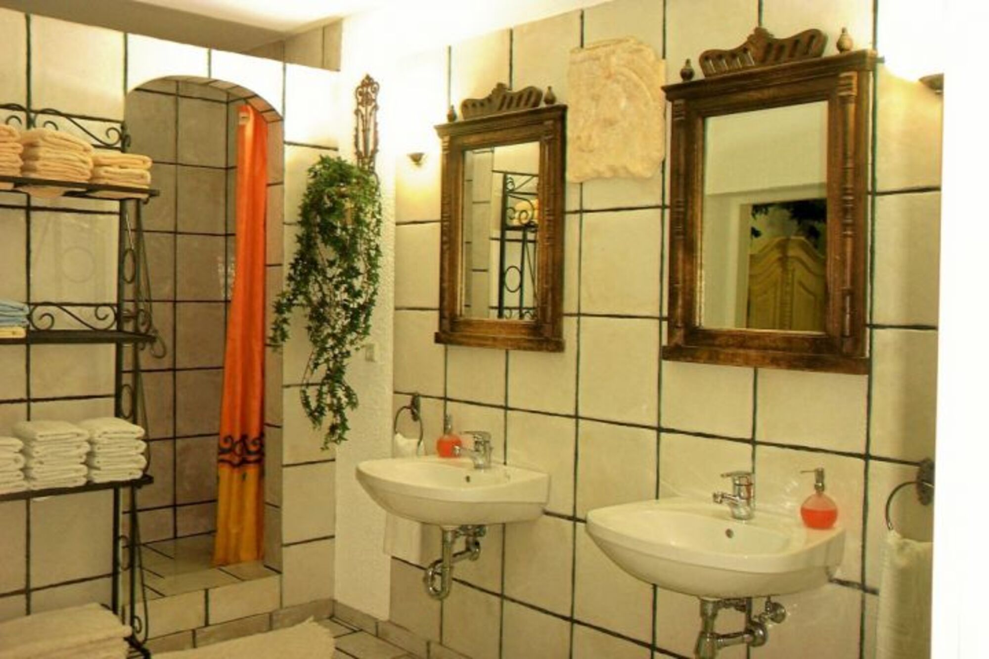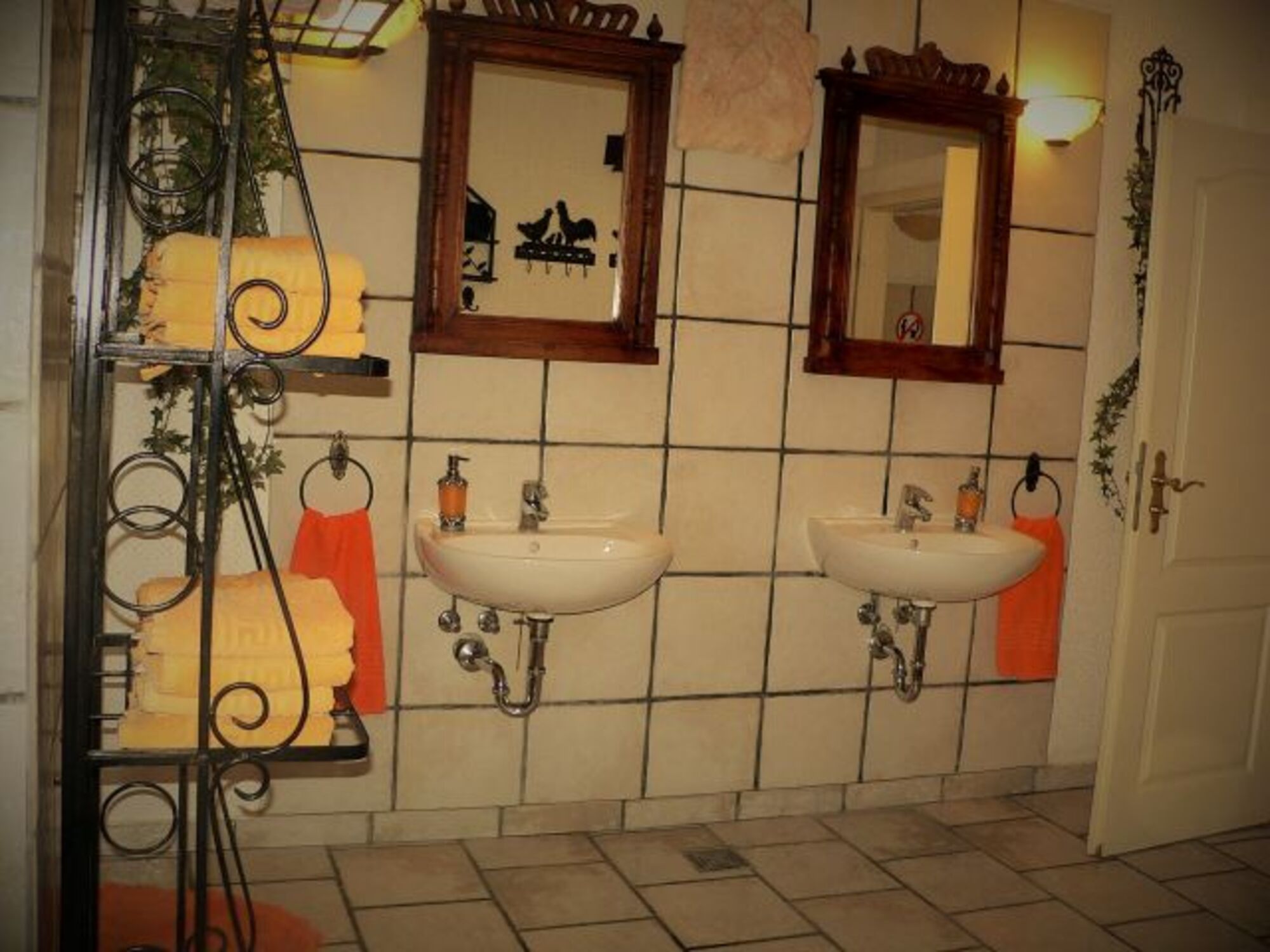 Auch das Bad strahlt südländliches Flair aus, es verfügt über 2 Duschen, 2 Waschbecken und 2 Toiletten.