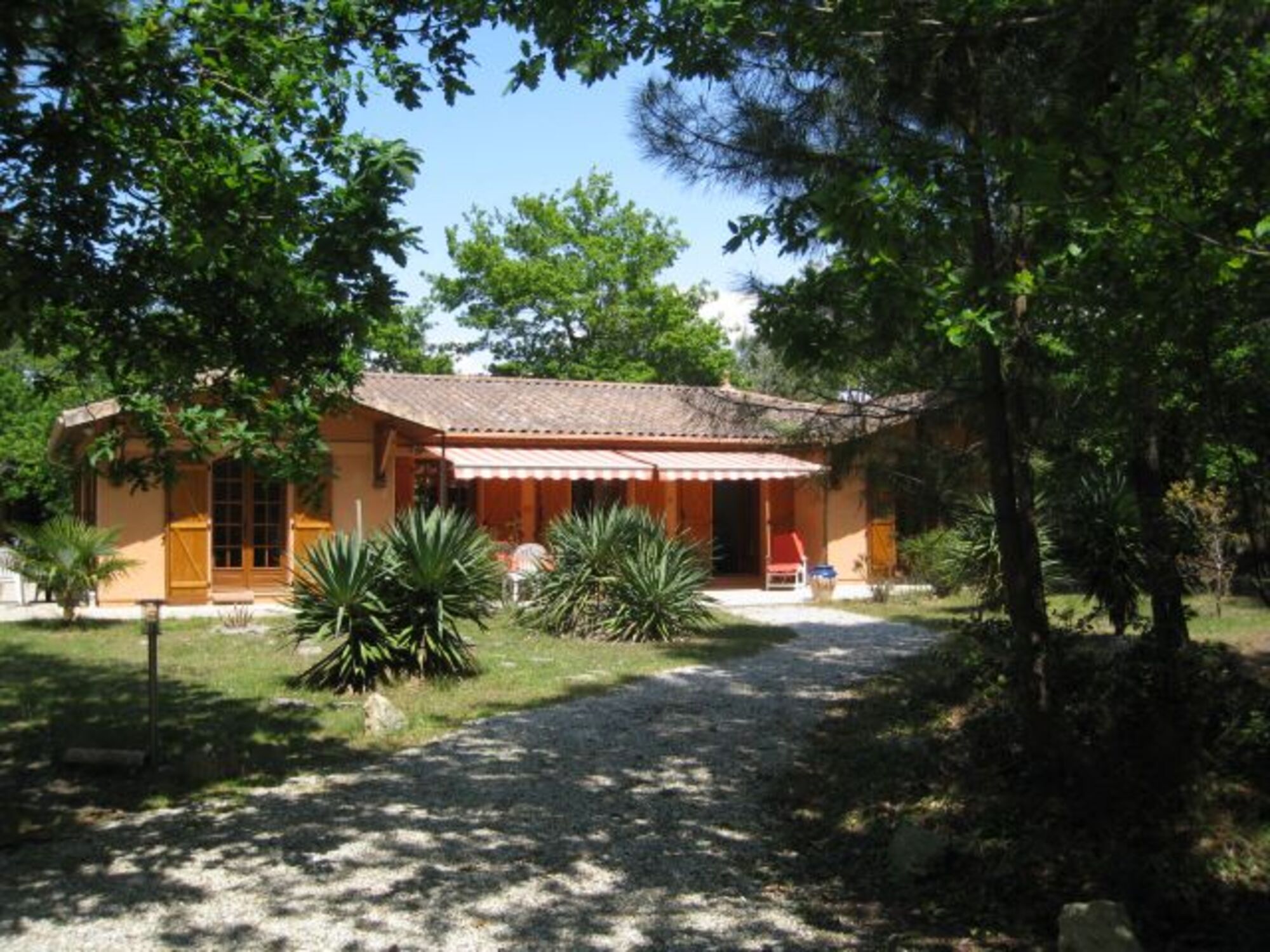 Das geschmackvoll und komfortabel eingerichtete Landhaus befindet sich auf einem ruhig gelegenen, zum Teil natur belassenen Grundstück. Sie finden ein großzügiges Wohn-/ Esszimmer mit kompletter Einbauküche, einem Wirtschaftsraum, 2 geräumige Schlafzimmer (1 Doppelbett, 2 Einzelbetten), 2 Bäder und eine große Sonnenterrasse. Die Sonnenterasse lässt sich mit 2 großen elektrisch gesteuerten Sonnenmarkisen ideal überdachen, und auch sonst findet sich auf dem riesigen, Grundstück mit altem Baumbestand sowohl vor wie auch hinter dem Haus immer wieder manch idyllisches Plätzchen zum Verweilen. Die Größe des Grundstücks bietet außerdem Raum für zahlreiche Freizeitaktivitäten. Das im landestypischen 'Style Médocain' gebaute Haus ist in allen Zimmern mit den typischen Fenstertüren ausgestattet, Sie gelangen somit von jedem Raum direkt hinaus in die Natur.Besonderheiten: Der in ca. 4 km entfernt gelegene Sandstrand mit seinen herrlichen Dünen ist in ca. 15 min. mit dem Fahrrad oder 5 min. mit dem Auto zu erreichen.