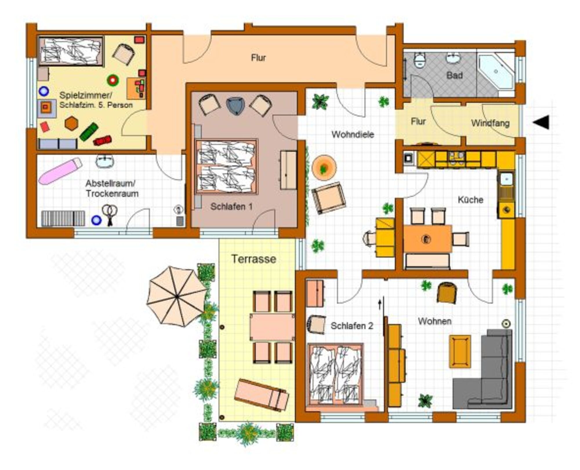 Genießen Sie in unserer ebenerdigen Ferienwohnung die moderne, geräumige und gemütliche Atmosphäre.Sie ist mit ihren ca. 98 qm eine wahre Wohlfühloase für bis zu 5 Personen.