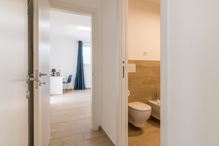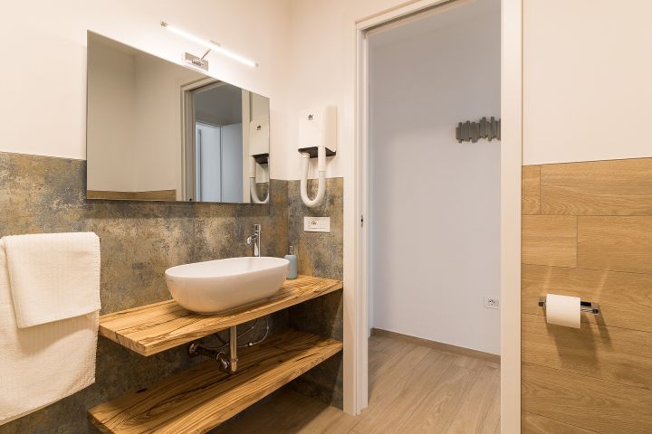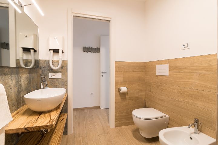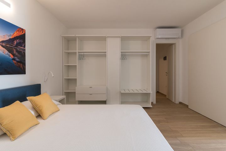 In der Wohnung befinden sich zwei Schlafzimmer, eins mit Doppelbett und das andere mit 2 Einzelbetten. Das Bad ist mit Dusche, Waschbecken mit Naturholzablage aus Olivenbaumholz von Tignale, Bidet, WC und Föhn bestückt. Zudem gehört ein fester Parkplatz zu jeder Wohnung. Zu Fuß kann man in den reizvollen Dorfkern gehen, wo man eine Bar und ein kleines Lebensmittelgeschäft findet. Piovere ist ideal für einen ruhigen gemütlichen Urlaub und ist nur 6 km vom Strand von Tignale entfernt und ebenfalls 6 Km vom Hauptort gelegen. Es ist ein idealer Ort für Strandurlaub als auch für Trekking und Wanderfreunde.