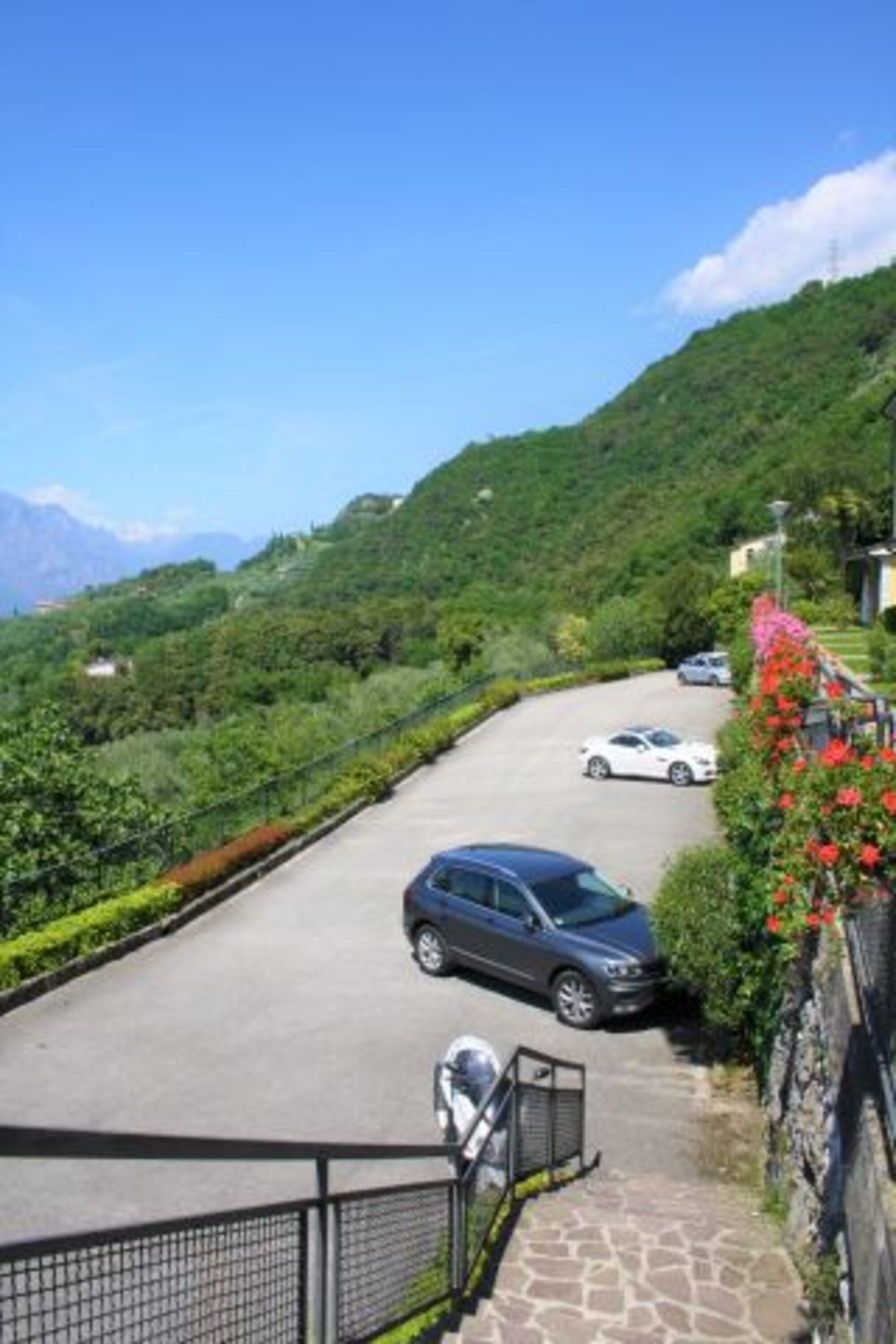 Ein großer Parkplatz für mehrere Pkws befindet sich direkt unterhalb der Ferienwohnung.