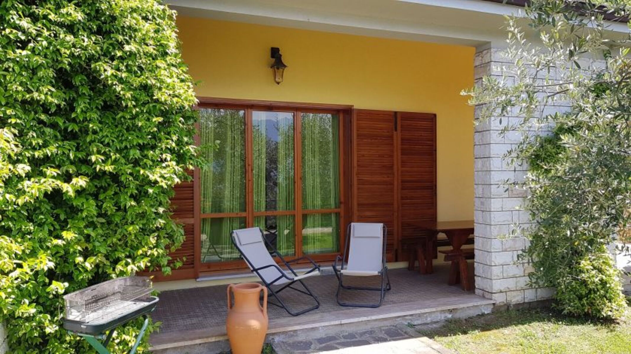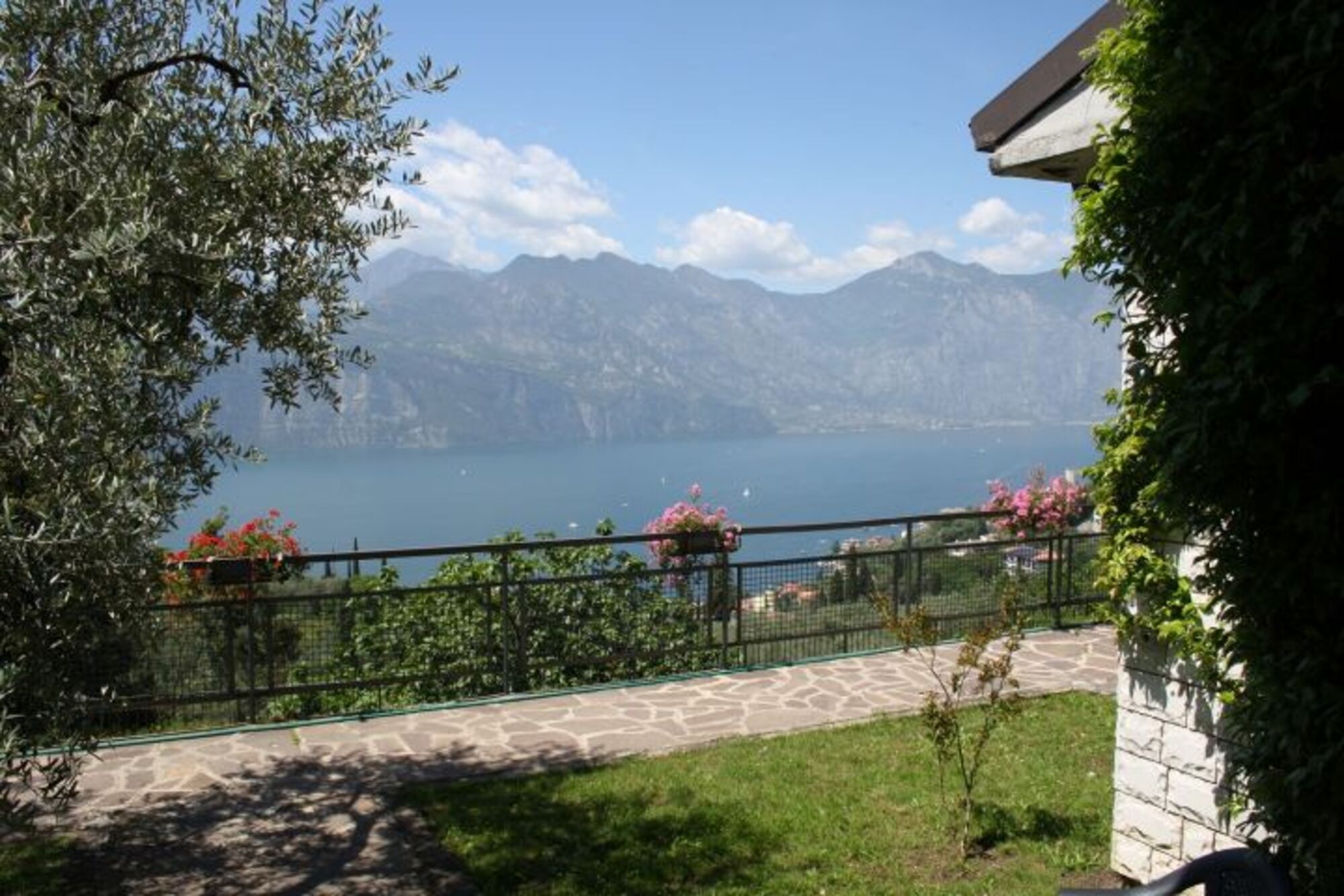 Vor dem Wohnzimmer befindet sich eine Terrasse mit einem fantastischen Blick auf den Gardasee und Malcesine.