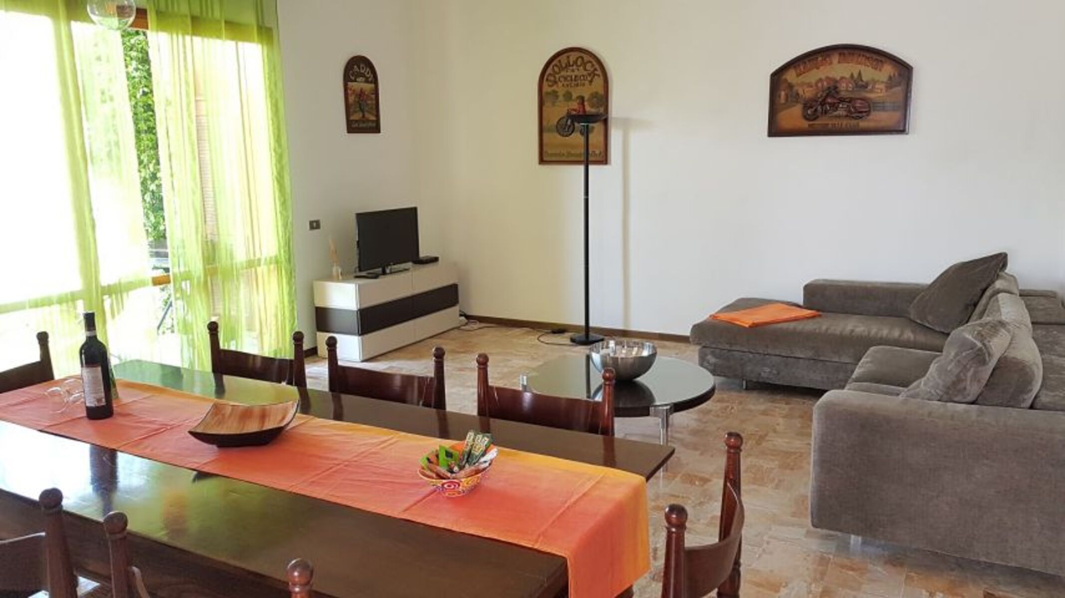 Die Ferienwohnung ist außerdem ausgestattet mit einem großen Esstisch für 6 Personen und einem SAT-LCD mit allen deutschen Programmen.