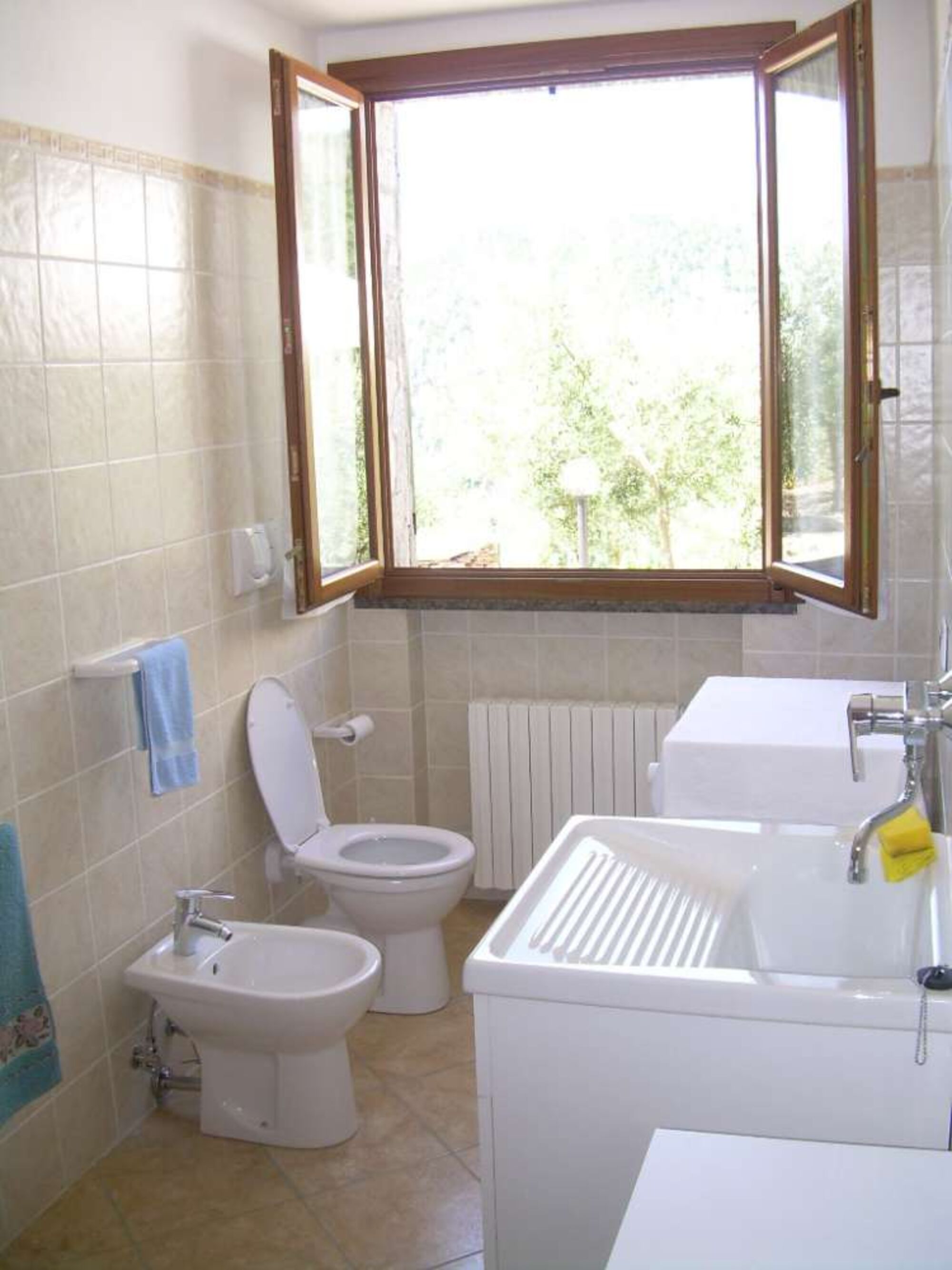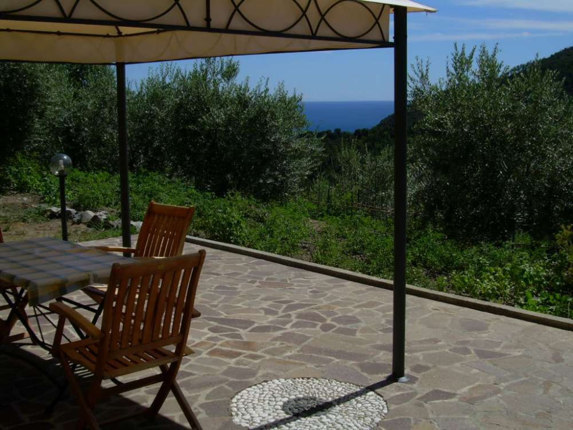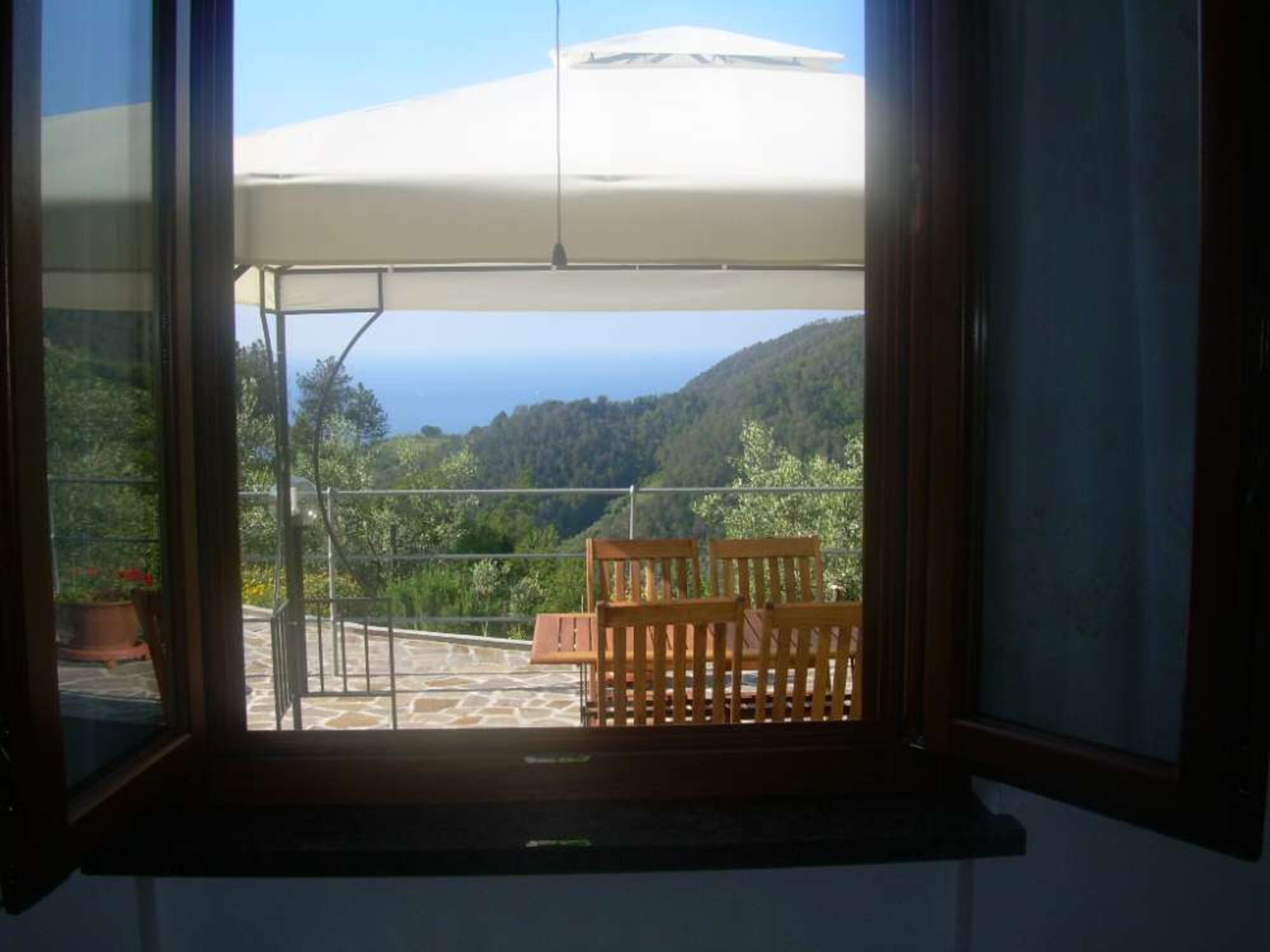 Der kleine Ort Moneglia selbst liegt 2 km entfernt und verfügt über eine vollkommen restaurierten Altstadt mit den für ligurisch typischen Fußgängergassen und vielen Läden und Cafés. Das Meer ist sauber und der Strand liegt in einer schönen Bucht vor dem Ort.Die Ferienwohnung befindet sich inmitten von Oliven-, Wein- und Obsthainen. Sie liegt in einer spektakulären Hügellage mit großartigen Ausblicken über das Meer und die Berge.
