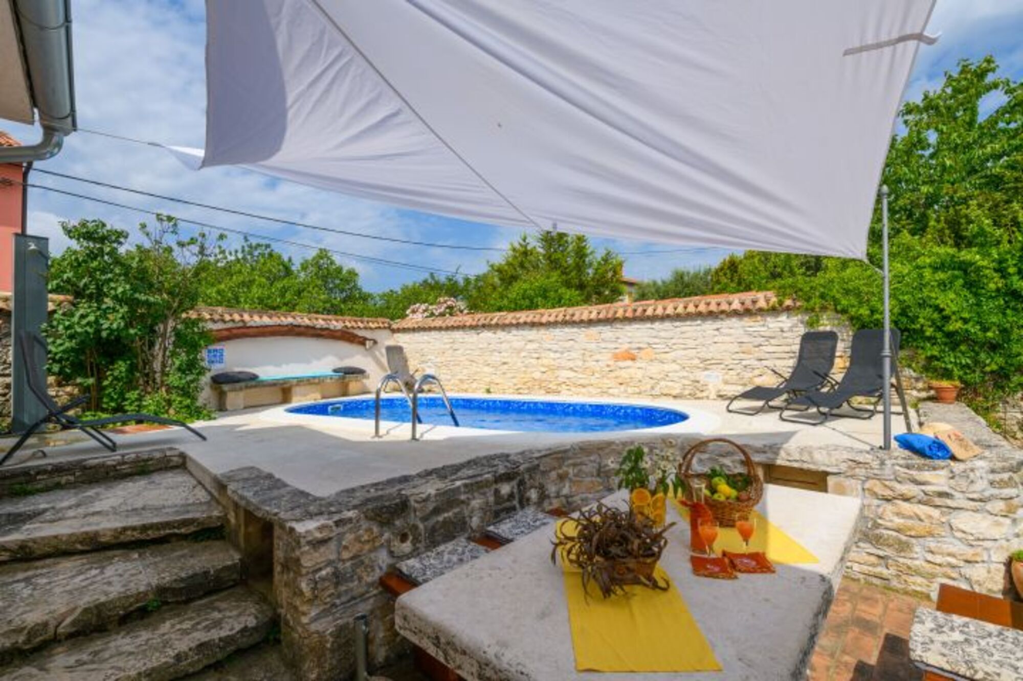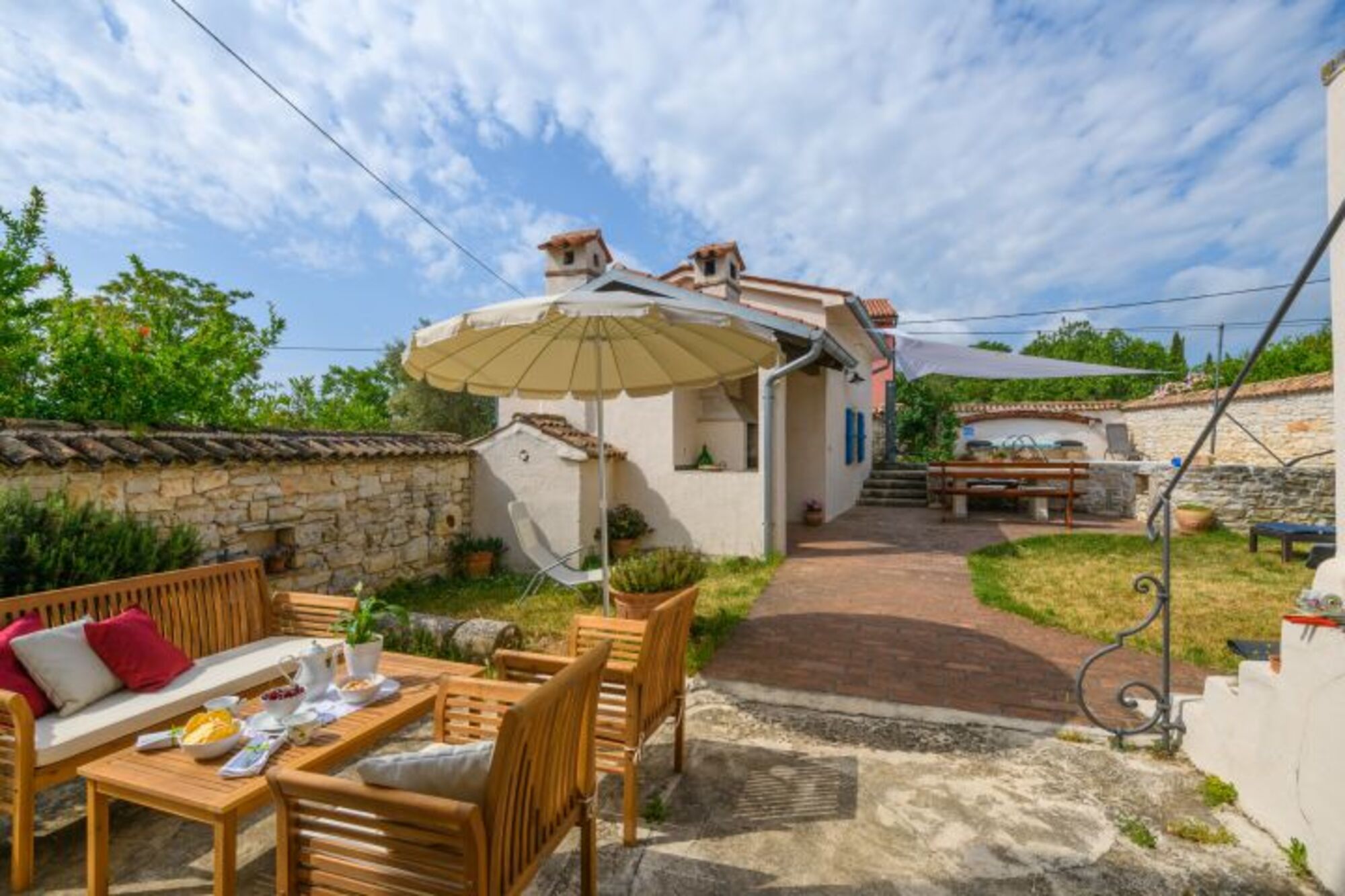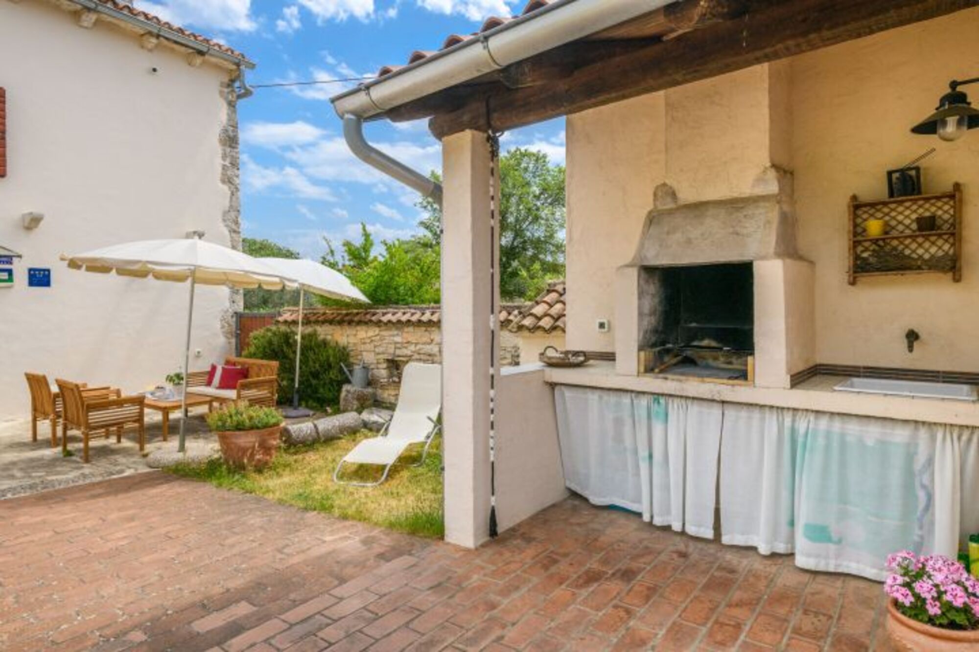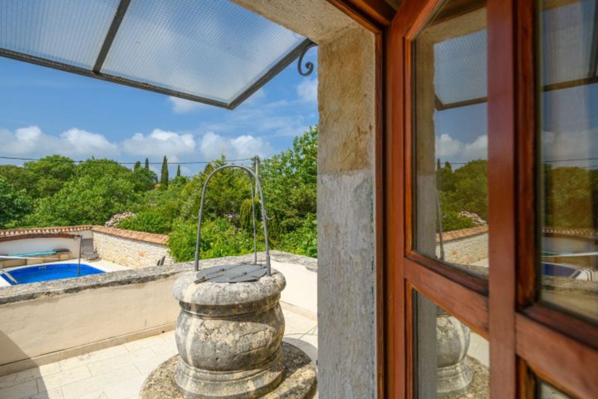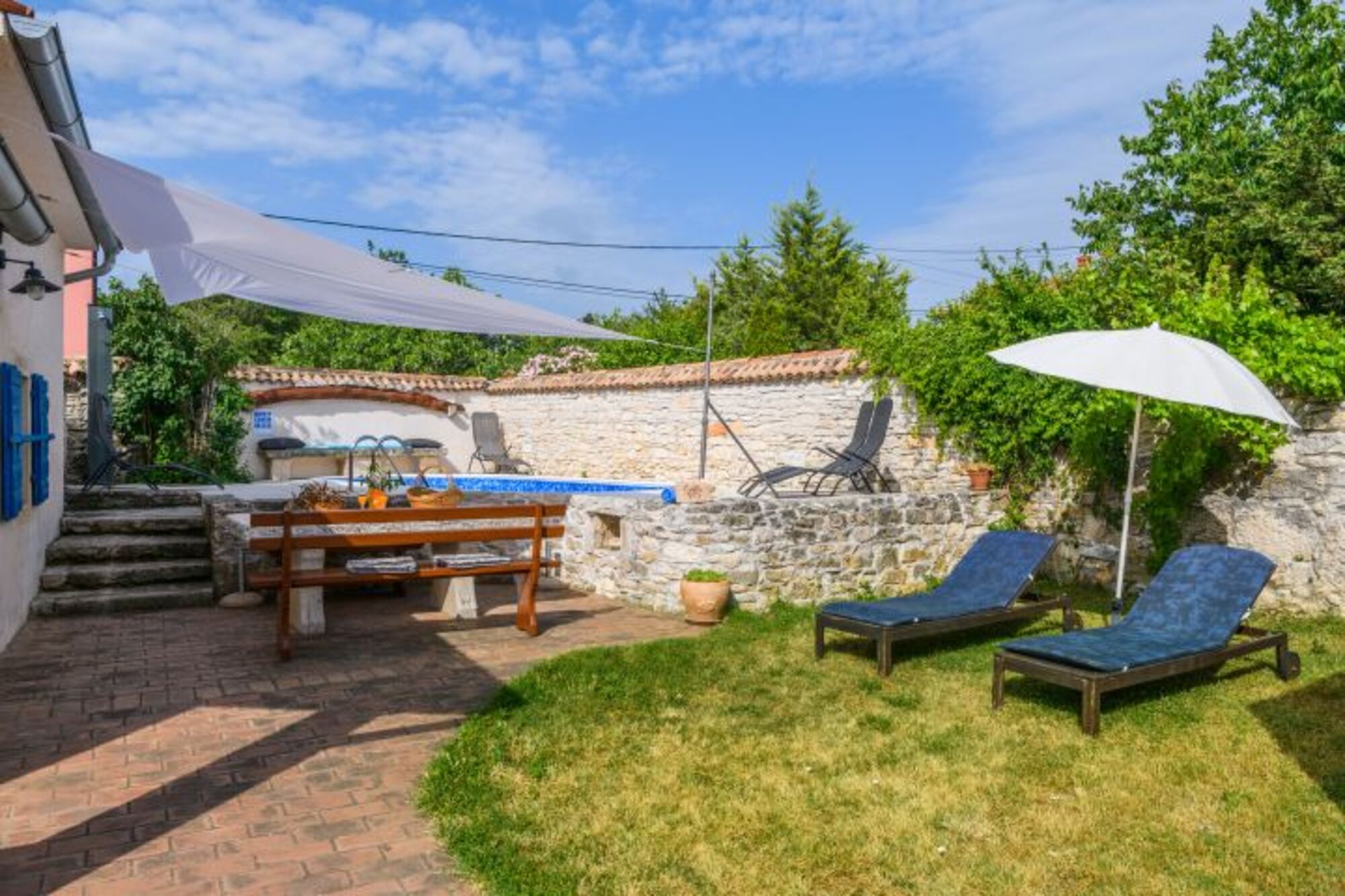 Villa für 6 Personen, 125 m², zwei Etagen. Im Erdgeschoss: Wohnzimmer mit offenem Kamin, Küche, und Dusche-WC. In der ersten Etage: zwei Schlafzimmer (jedes hat ein Doppellbett und ein Einzelbett) und ein Badezimmer. Babybett auf Anfrage. Außen: Parkplatz, Garten, Terrasse mit Esstisch, Liegestühle, Grill, Pool 6x3m. Eine Besonderheit des Hauses befindet sich auf der Eingangsterrasse – die alte Zisterne aus dem 19. Jahrhundert, welche unter Denkmalschutz steht.Zertifikat Domus Bonus Istria: Domus Bonus Istra - Zertifikat versehenen Ferienwohnungen Domus Bonus – Istrische Qualität – stellen Wohneinheiten in Privatunterkünften dar, die den besonderen vorgegebenen Kriterien entsprechen. Für die Qualität der Unterkunft, die in den Objekten mit dem Qualitätszeichen Domus Bonus angeboten wird, garantiert der Tourismusverband Istrien.