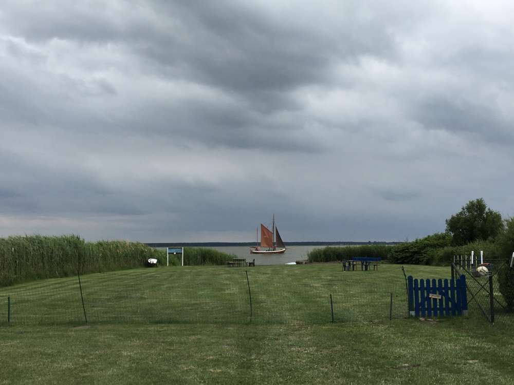 Bei geöffneter Balkontür oder Fenster können Sie, wenn es weht, das Plätschern der Wellen und das Rauschen des Schilfes hören oder der Schrei der Möwen oder auch der Kraniche im Frühjahr oder Herbst..