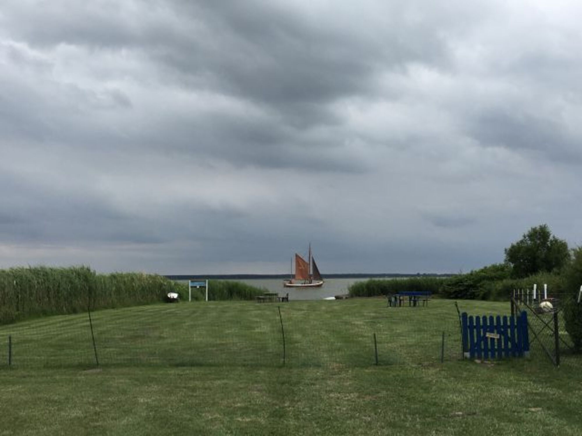 Bei geöffneter Terrassentür oder Fenster können Sie, wenn es weht, das Plätschern der Wellen und das Rauschen des Schilfes hören oder der Schrei der Möven oder auch der Kraniche im Frühjahr oder Herbst..