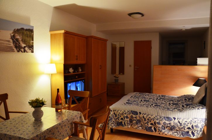 Im Strand-Apartment Mondfisch schalten Sie im nu auf Erholung. Das Apartment (30m²) hat eine schöne Terrasse, 1 Wohnraum mit amerikanischer Pentry-Küche und Duschbad (mit Fön).Das Bad ist mit Durchlauferhitzer ausgestattet.