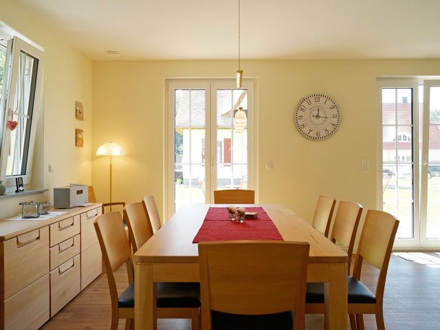Das großzügige Reetdachhaus "Bastians Reethus" liegt nahe dem Ostseestrand in der neu angelegten Ferienhaus-Siedlung Ostseepark Glowe.Es liegt auf einem ca. 950 m² großen Grundstück am Waldrand. Bastians Reethus hat eine Wohnfläche von ca. 160 m² und ist modern und familienfreundlich eingerichtet. Im Erdgeschoss befindet sich der großzügige Wohn- und Essbereich mit offener Küche und zwei angrenzenden Terrassen. Das Dachgeschoss verfügt über drei Schlafzimmer mit insgesamt sechs Betten für Erwachsene und zwei zusätzlichen Aufbettungen für Kleinkinder. Im ausgebauten Spitzboden befindet sich ein viertes Schlafzimmer mit vier weiteren Betten und einem Gäste-WC. Zwei Duschbäder - eines mit zusätzlicher Badewanne - stehen Ihnen während ihres Aufenthaltes im Erd- und Obergeschoss zur Verfügung.