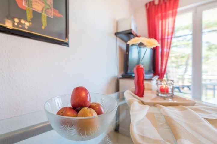 Die Wohnung liegt in unmittelbarer Nähe der Hauptgeschäftsstraße, der Strandstraße, mit allen Geschäften, die man für einen erholsamen Urlaub braucht. Ein kleiner Supermarkt, Bäcker, Fahrradverleih, sowie Restaurants, Eisdielen, Cafés befinden sich in Fußläufiger Entfernung.Der Strand befindet sich ca. 50 Meter entfernt direkt vor dem Hauptbalkon der Wohnung.