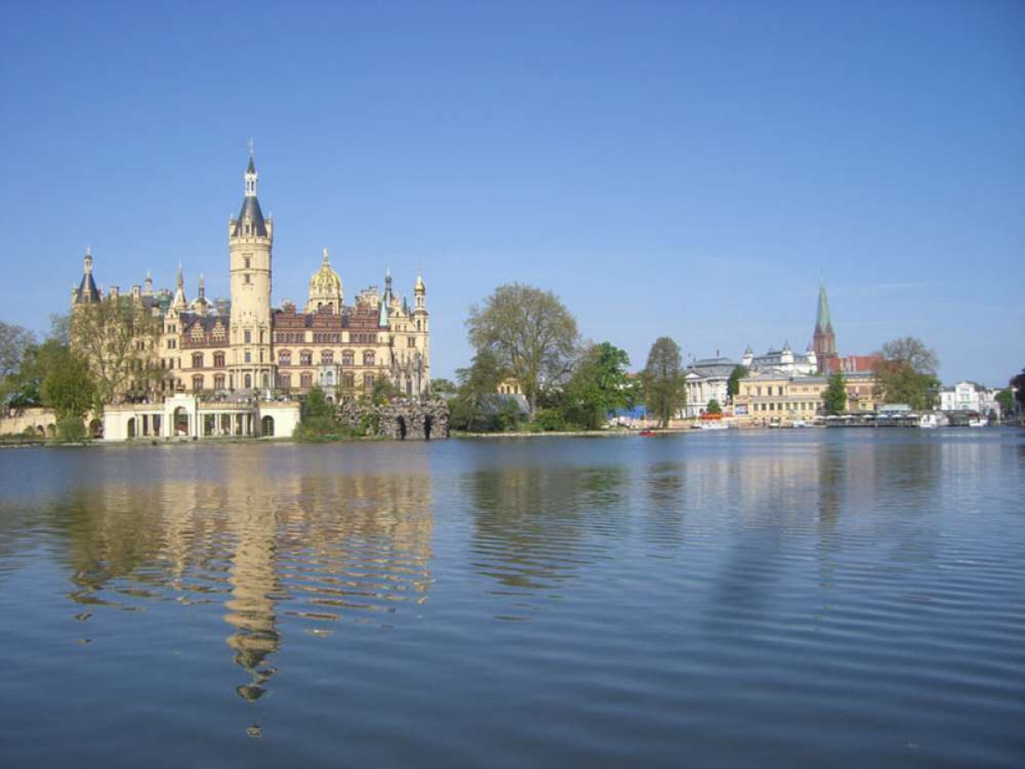 Auf einer kleinen Insel im Schweriner See gelegen faszieniert es jeden Neuankömmling der Stadt. Von überallher ist der Prachtbau sichtbar. Man sagt, das Schloss hat so viel Türme wie das Jahr Tage hat. Es ist umgeben von dem wunderschönen Burggarten und ein Stück weiter kann man durch den großen Schlossgarten schlendern.