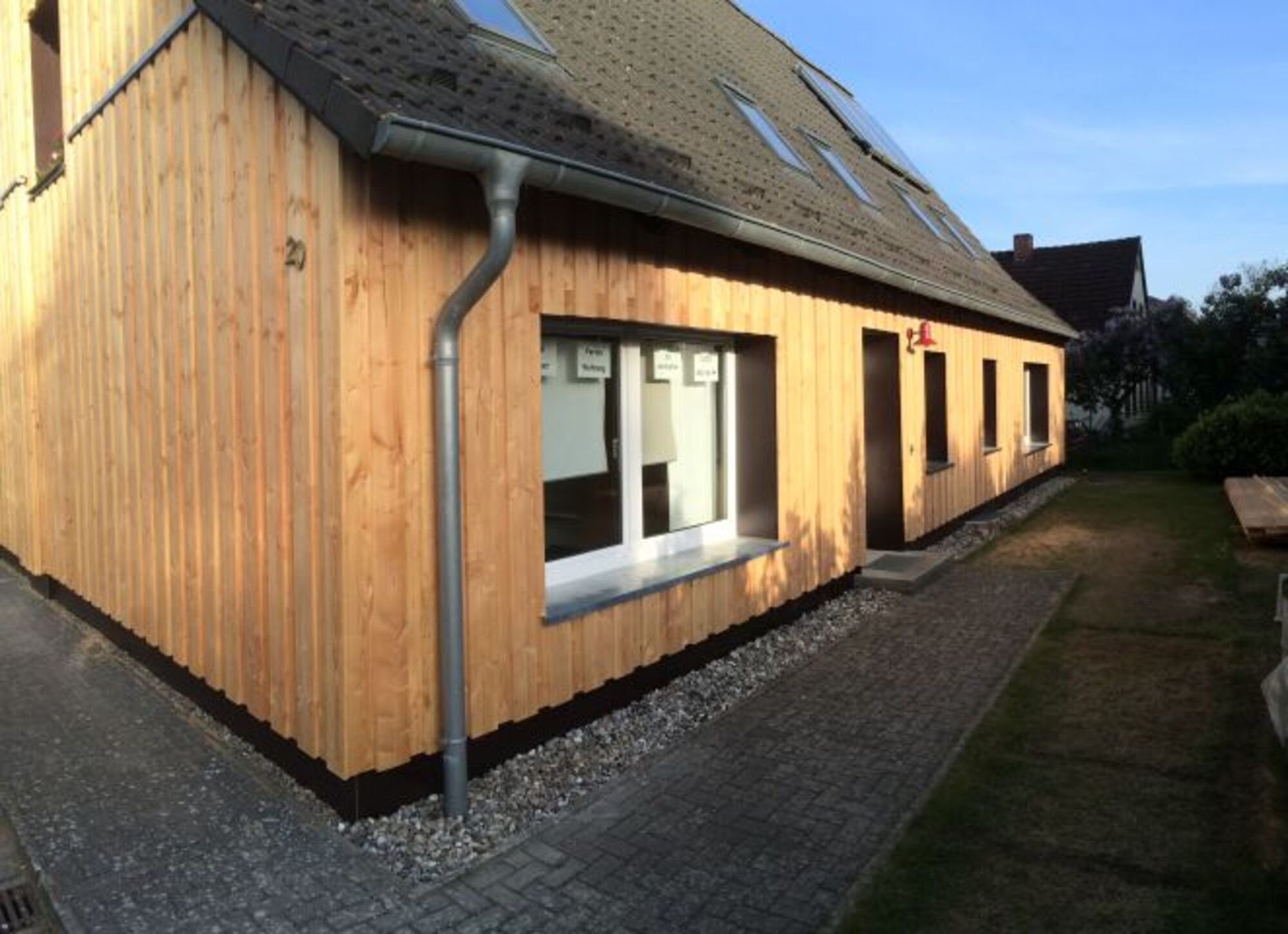 über die Brücke, an den Schikanen vorbei und an der Kreuzung ist auf der linken Seite der Consrader Weg 20