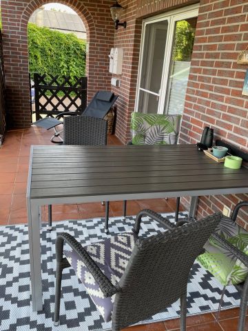 - Terrasse 20 qm (Zugang von der Küche und vom Wohnzimmer) mit Rasenfläche, Tisch für 4 Pers., 2 Liegen und Grill vorhanden
