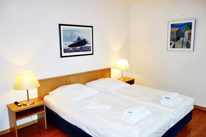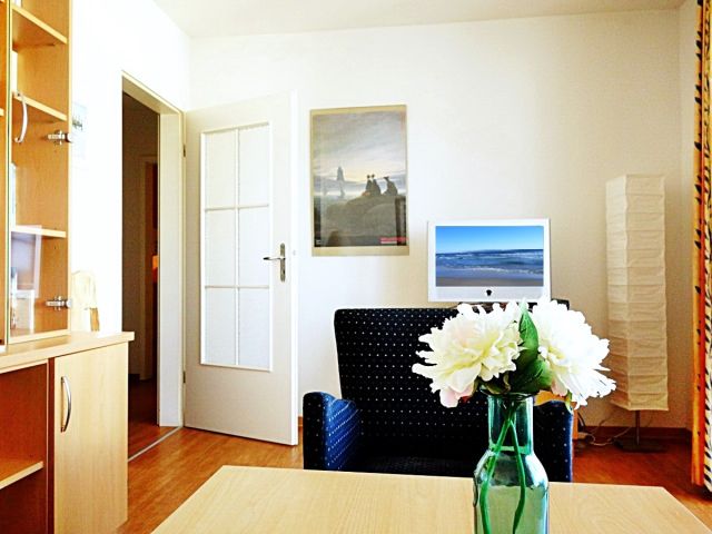 Die Wohnung verfügt über ein Wohn- Schlafzimmer mit großem Balkon, ein separates Schlafzimmer mit Insektenschutz an den Fenstern für ruhige Nächte, ein Bad, einen Abstellraum und eine separate Küche mit Essecke, komplett ausgestattet mit Radio, Herd mit Ceranfeldern, Kühlschrank mit Tiefkühlfach, Geschirrspülmaschine, Mikrowelle, Kaffeemaschine, Toaster, Eier- und Wasserkocher. Besteck und Geschirr sind selbstverständlich. Alle Räume sind mit einer Heizung ausgestattet.