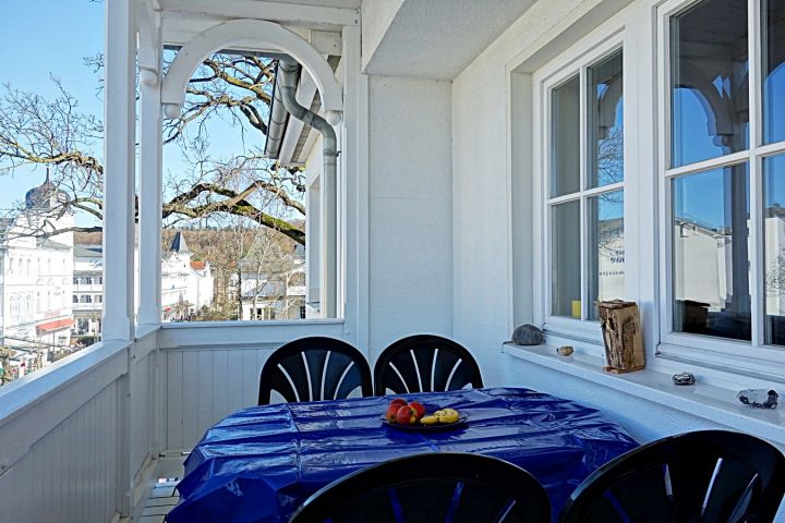 Moderne 56 m² große Nichtraucher-Ferienwohnung mit großen Südost-Balkon im 2. Obergeschoss OG einer im historischen Bäderstil im Jahr 2000 neu erbauten Villa.Zentral gelegen, nur wenige Schritte von Strand, Hauptgeschäftsstraße und Seebrücke entfernt. In unmittelbarer Nähe befinden sich Cafés, Restaurants und Geschäfte. Auch der Bahnhof ist schnell erreicht.