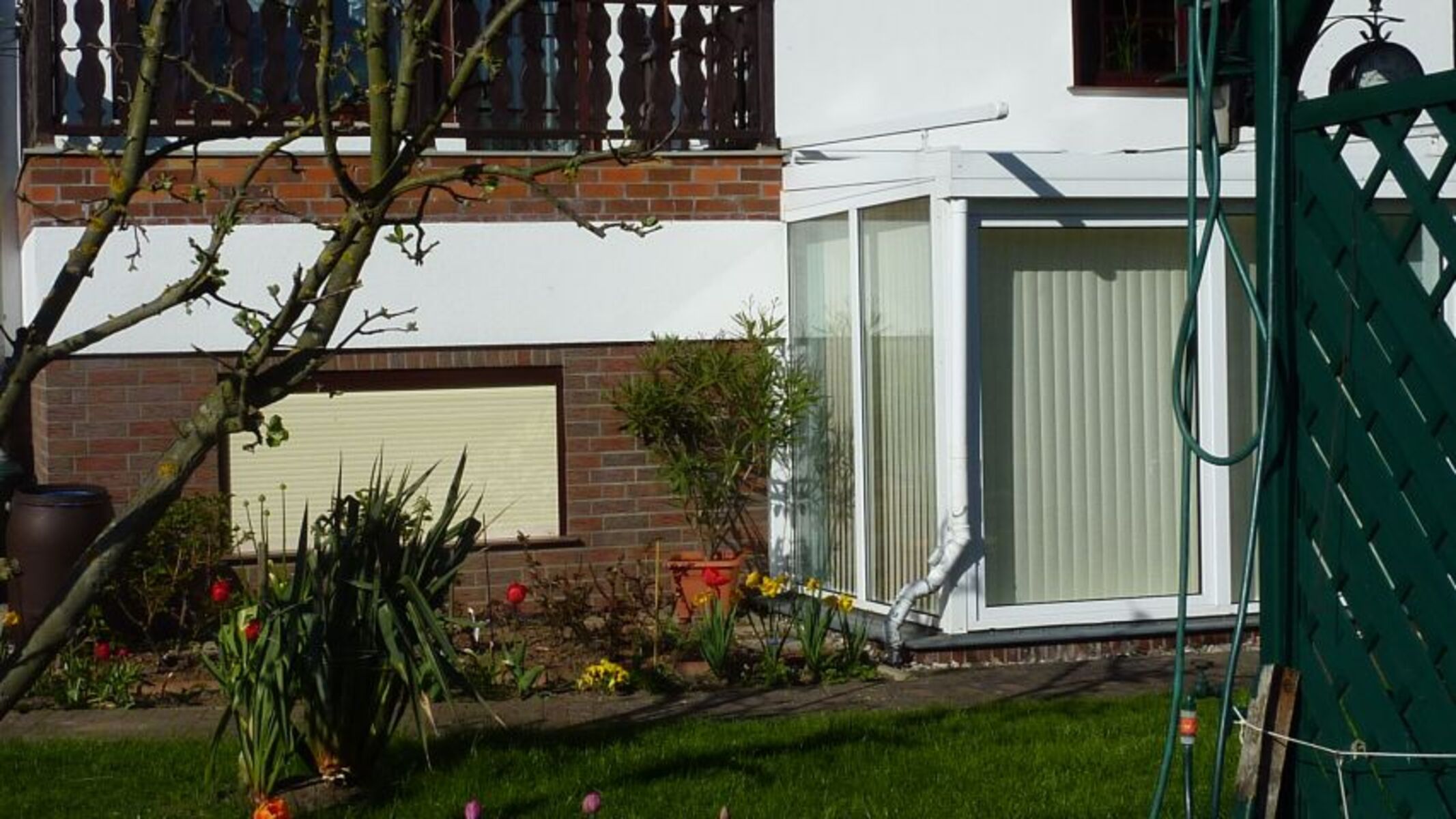 Ein eigener Eingang führt in den Wintergarten und sie betreten die Wohnung. Eine Einheit bilden die Wohnräume, d.h. die Küche, der Wintergarten und der Schlafraum. Das Bad liegt einen Schritt über den privaten Flur.