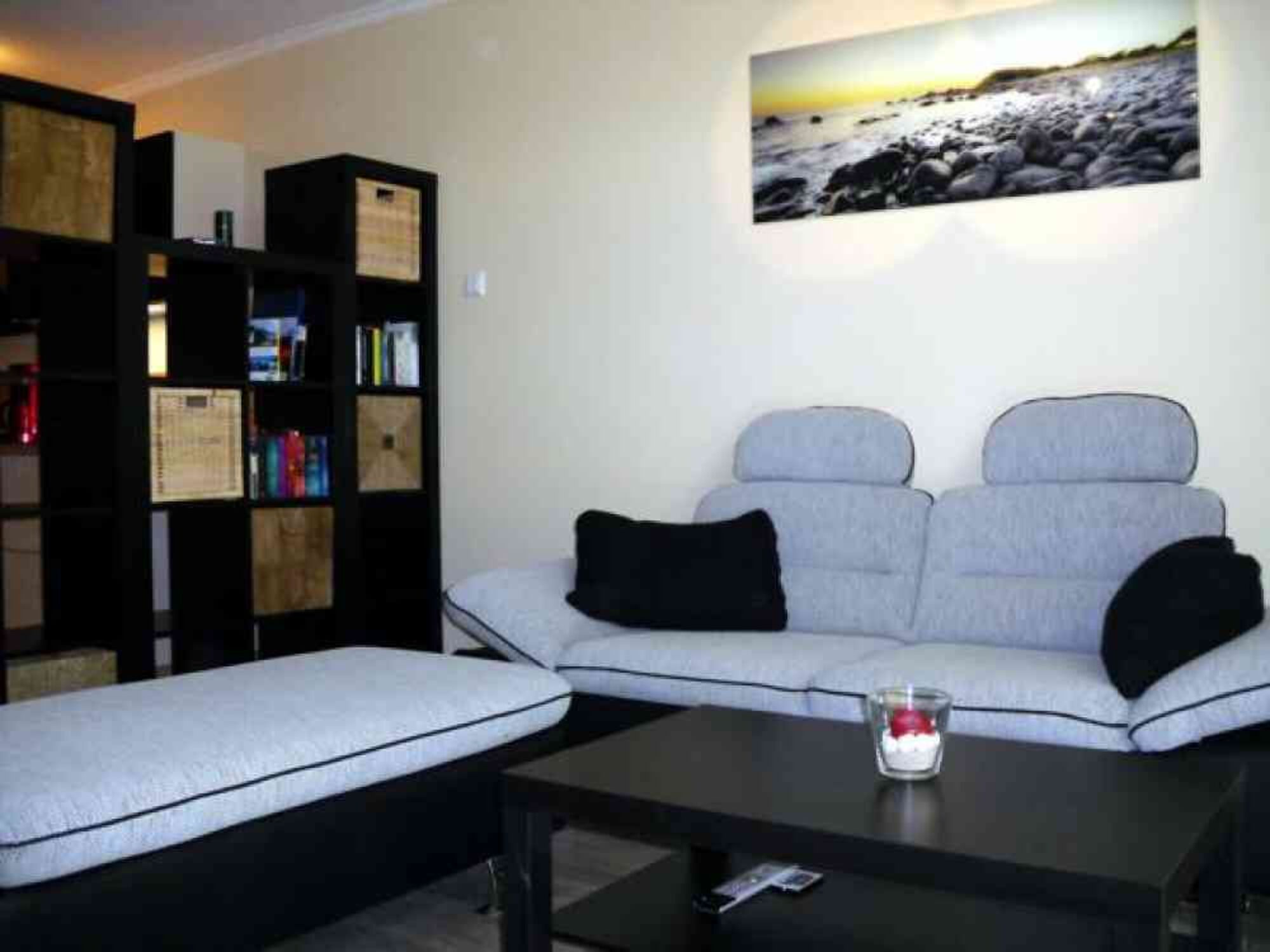 Großzügiges 2-Zimmer-Apartment mit Meerblick vom Balkon. Das Wohnzimmer hat eine Couch, großen Hocker, Couchtisch und ein offenes Regal. Als Highlight erwartet Sie eine hochwertige Home-Entertainment-Anlage mit einer Bildschirmdiagonale von 116 cm, integriertem Radio und einem Blue-Ray-Player zum Abspielen von DVDs oder CDs. Auf dem nach Osten ausgerichteten Balkon können Sie Ihr Frühstück mit Blick auf das Meer und die Morgensonne genießen.Im Schlafzimmer finden Sie ein komfortables Boxspringbett und einen sehr geräumigen Einbauschrank. Der Küchen- und Essbereich mit Einbauküche, Tisch und vier Stühlen bietet Ihnen viel Platz. Zum Kochen stehen Ihnen zwei Ceranfeldplatten und eine Mikrowelle mit integriertem Grill zur Verfügung. Selbstverständlich gehört ein Geschirrspüler, Kühlschrank mit Gefrierfach, Toaster, Kaffeemaschine und Wasserkocher zur Ausstattung.