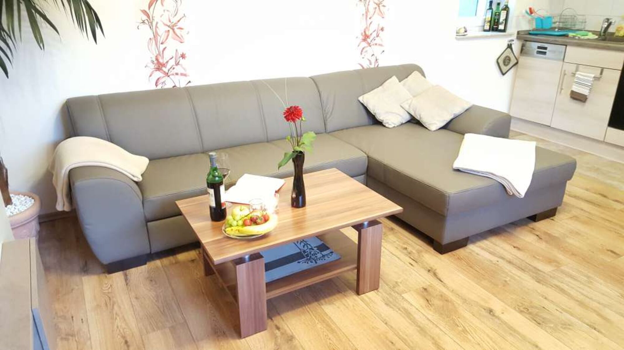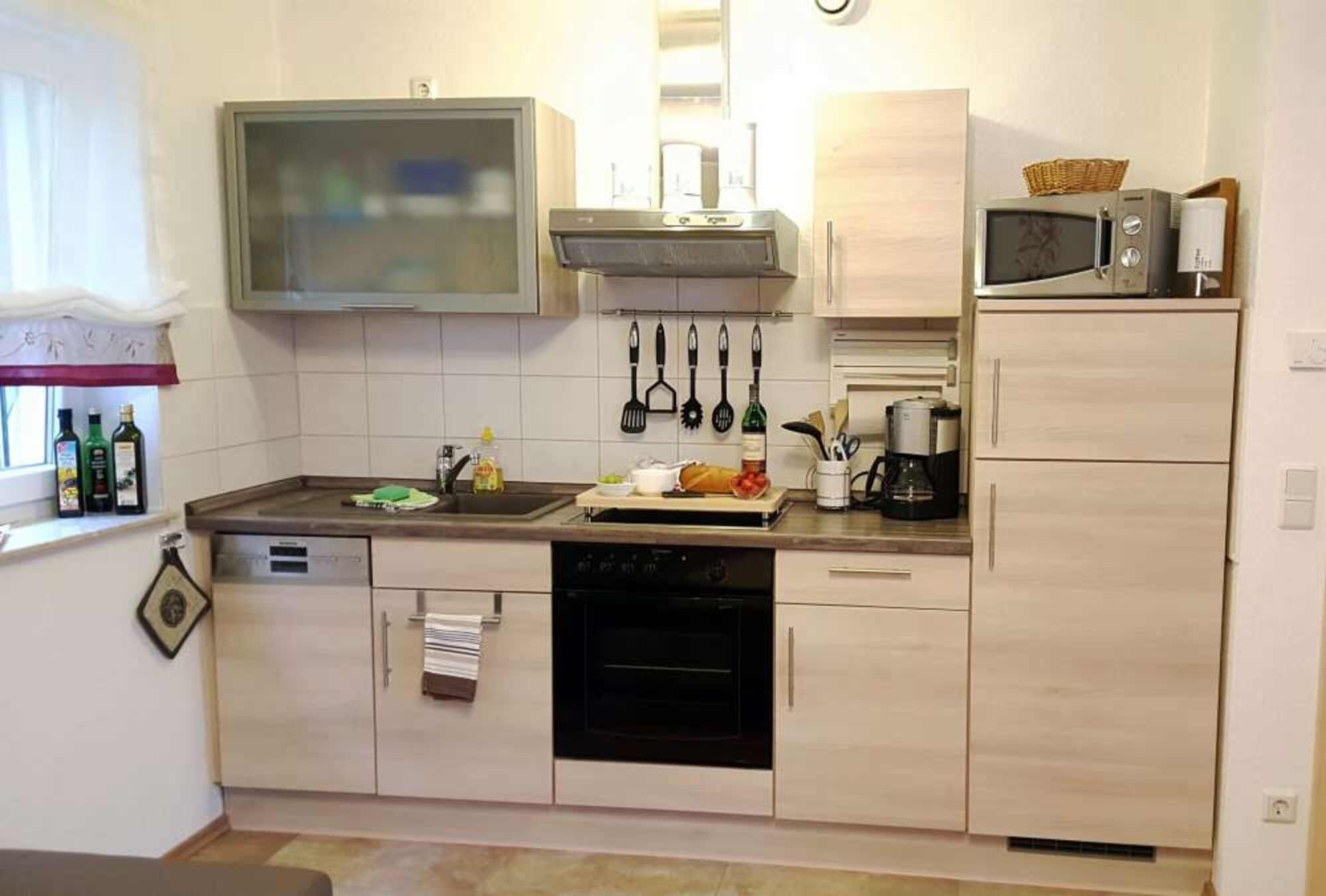 - Gut ausgestattete Küchenzeile mit Geschirrspüler, Cerankochfeld und Mikrowelle