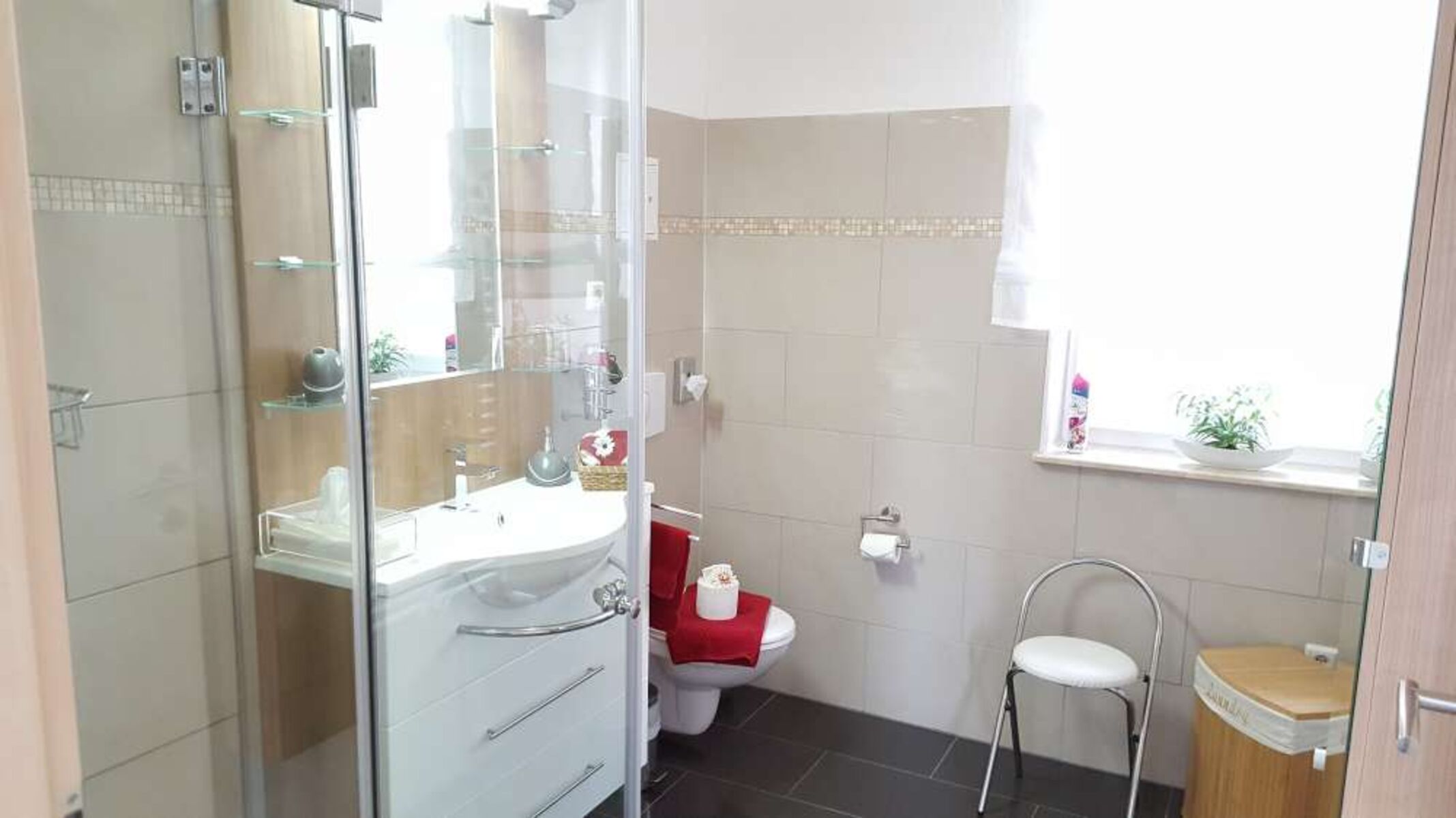 - Badezimmer: Modernes Bad mit ebenerdiger Dusche.