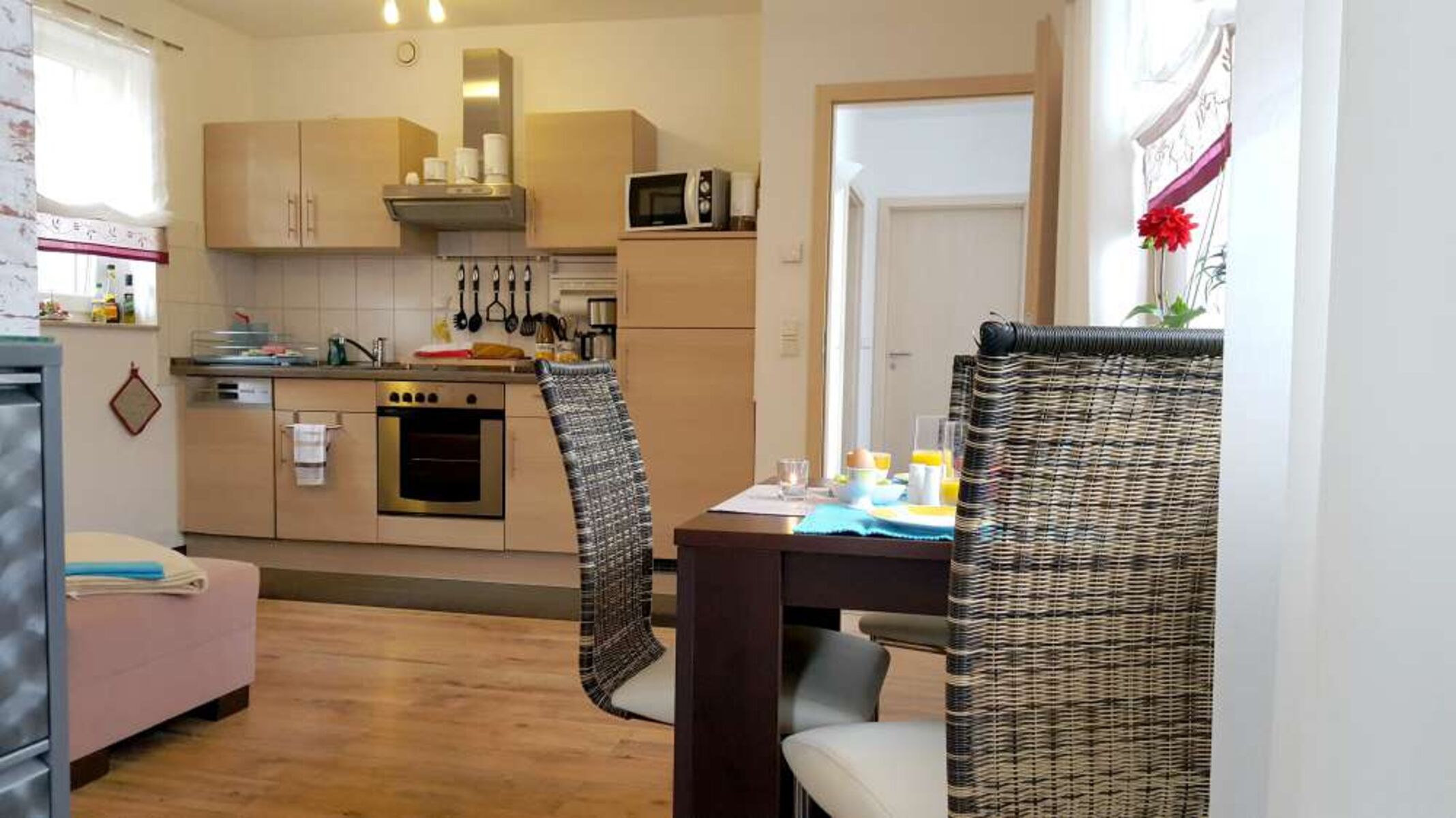 Die angegebenen Preise gelten für eine Belegung mit bis zu 2 Personen. Für jede weitere Person wird ein Zuschlag von 25,00 € berechnet. Im Preis enthalten sind alle Nebenkosten wie Wasser, Strom und Heizung sowie die gesetzliche Mehrwertsteuer.Für Kinder besteht im Schlafzimmer die Möglichkeit einer Aufbettung mit einem Babyreisebett ODER einem Gästebett. Eine Kleinkindausstattung - bestehend aus einem Baby-Reisebettchen mit zusätzlicher Matratze und kleinkindgerechtem Bettzeug, Wickelunterlage, Hochstuhl und Babybadewanne - steht kostenfrei zur Verfügung. Bitte bei Bedarf in der Buchung mit angeben. Eine weitere Aufbettung ist im Wohnzimmer auf der Schlafcouch möglich.