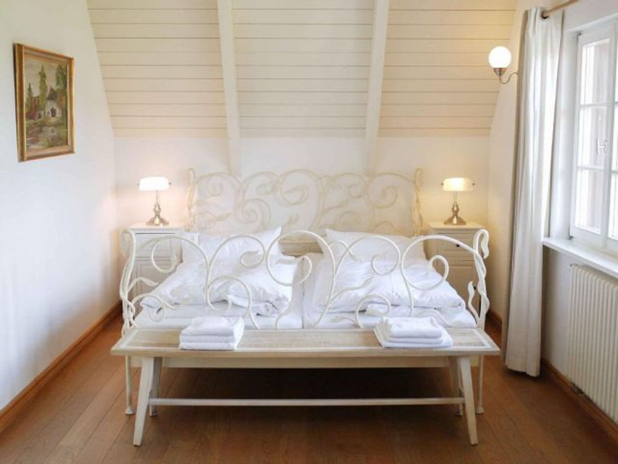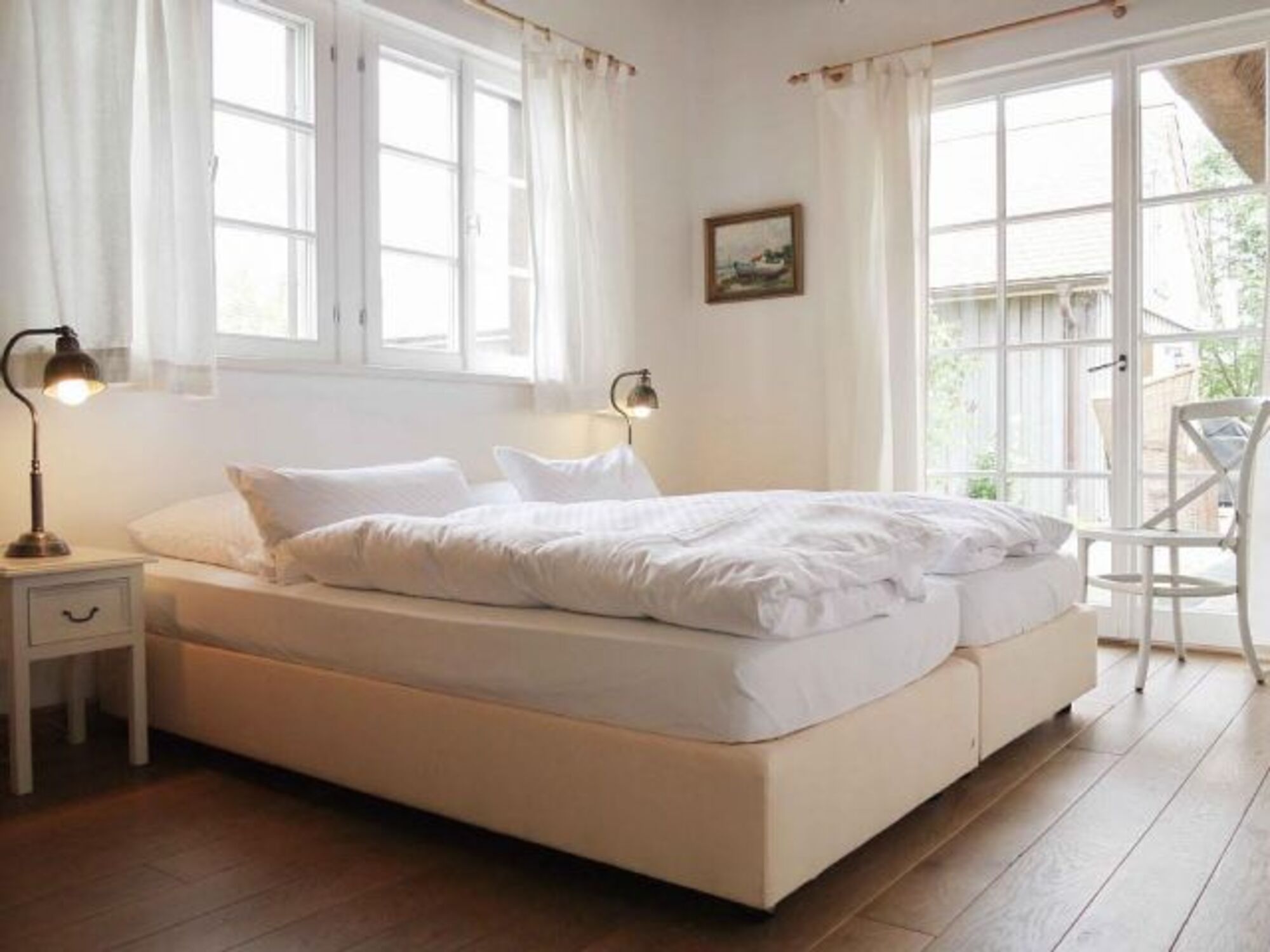 Vier komfortable, großzügige Doppelbettzimmer. Zwei Aufbettungszimmer im Dachgeschoss mit je zwei Einzelbetten.
