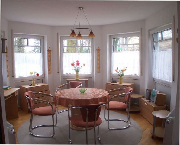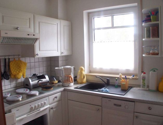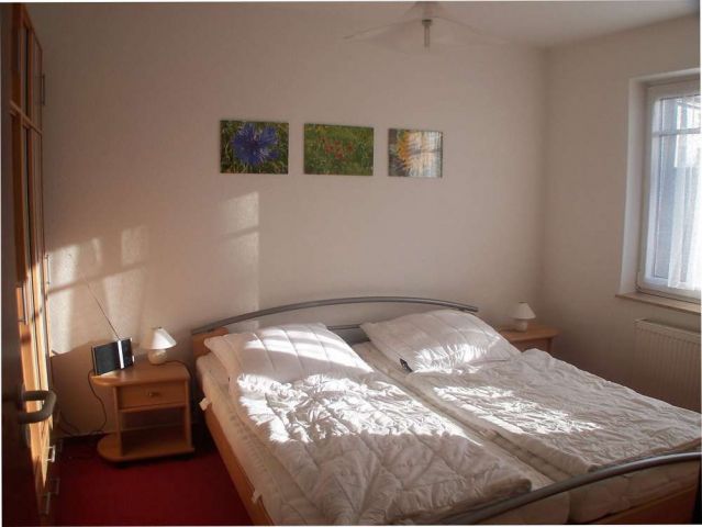 Die Ferienwohnung bietet auf 60m² Raum für max. 3 Personen.Wohnzimmer (mit Schlafcouch), Schlafzimmer (mit Doppelbett), Erkerzimmer als Essplatz, Küche mit Geschirrspüler und Mikrowelle, Bad mit Dusche, Terrasse, Flur und Parkplatz stehen zur Verfügung.