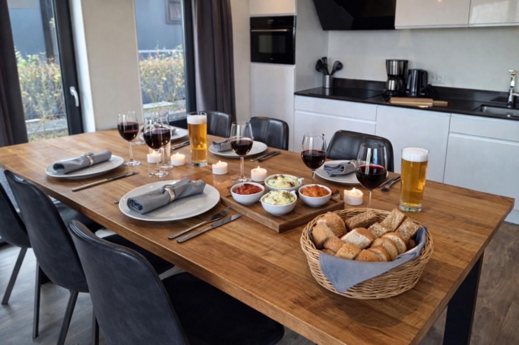 Das 2022 erbaute klimatisierte Nichtraucher-Ferienhaus mit einem eigenen Parkplatz ist für 6 Personen großzügig eingerichtet und ausgestattet. Dafür stehen 3 Schlafzimmer; 2 Bäder mit Regendusche und 2 Toiletten zur Verfügung. Ein lichtdurchfluteter großzügiger offener Wohn-, Ess- und Küchenbereich komplettiert das Innere. Selbstverständlich sind in der Küche alle modernen Elektrogeräte wie Spülmaschine; Herd; Microwelle; Kühlschrank mit Gefrierfach; Toaster usw. vorhanden. Eigenes WLAN in Grundstücksnähe, sowie kostenloses WLAN auf dem gesamten Gelände ist nutzbar.Die mit Garten- und Lounge-Möbel ausgestattete Terrasse vor dem Wohn-Essbereich wirkt durch große Schiebetüren wie eine Erweiterung des Innenbereichs. Ein Grill für BBQ steht zur Verfügung.
