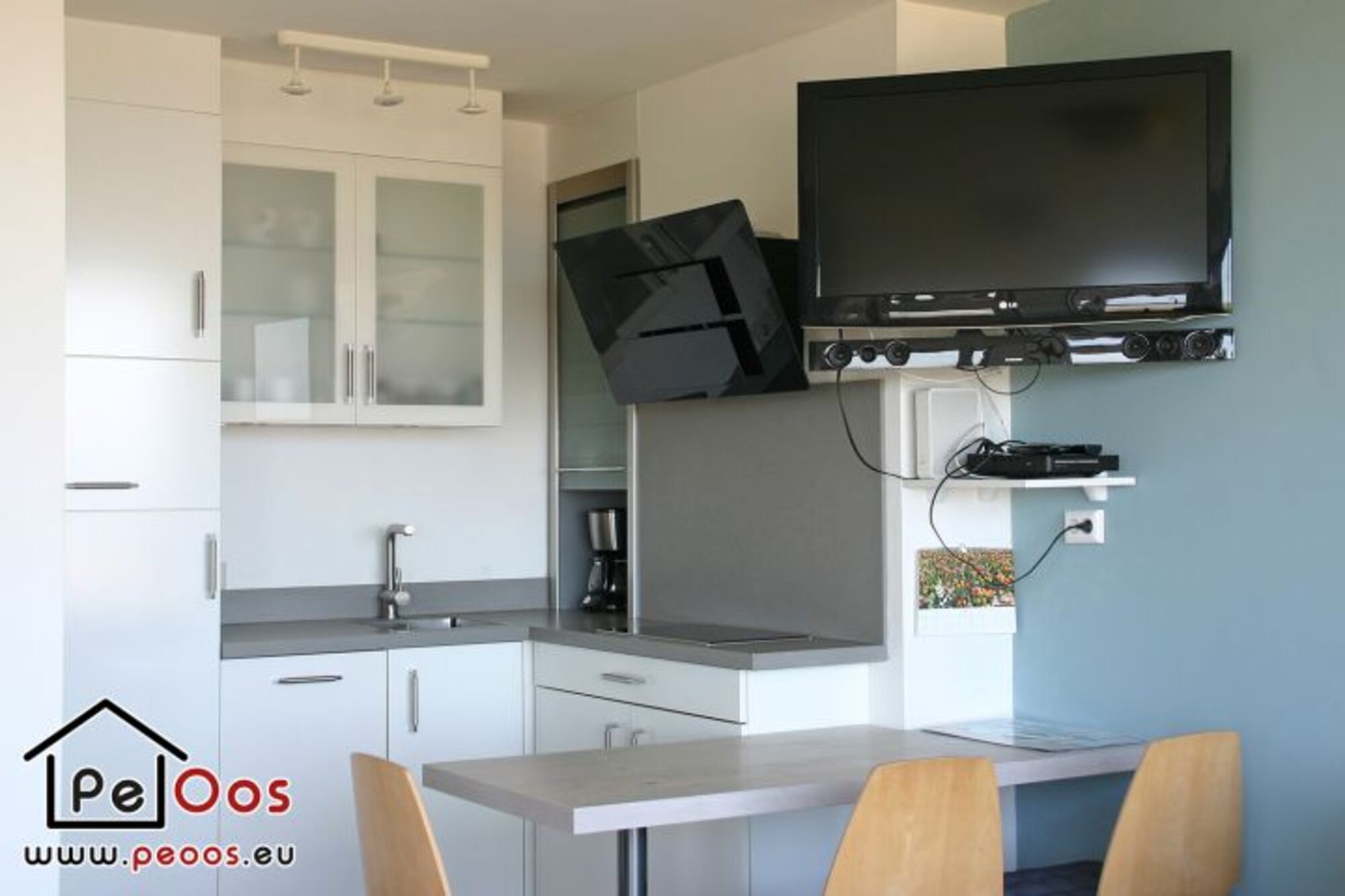 Die topmoderne Küche (2014) bietet mit einer Geschirrspülmaschine, Kombi-Mikrowelle, Induktionsherd mit Abzugshaube und großem Kühlschrank/Gefrierfach den Komfort, der ihrem Urlaub das gewisse Extra verleiht. Ein schönes Essen nach einem herrlichen Strandtag läßt sich im Handumdrehen auf den angschlossenen Esstisch zaubern.