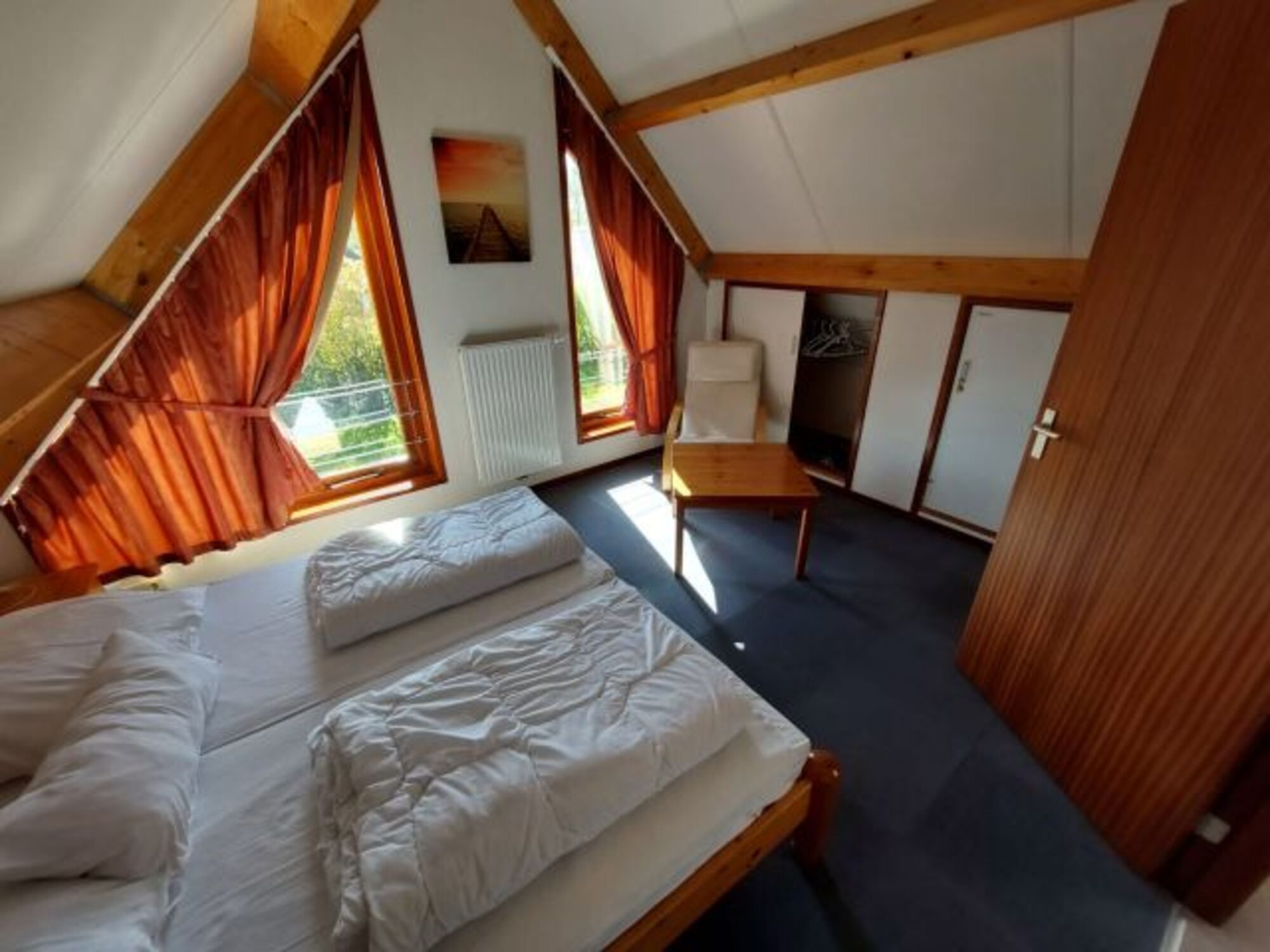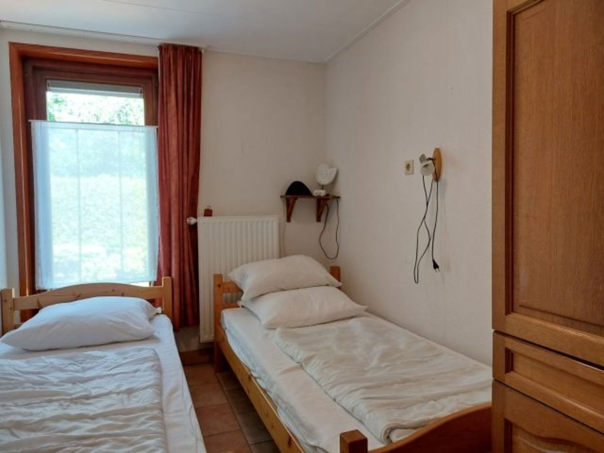 Das Schlafzimmer im Erdgeschoss hat zwei Einzelbetten 180x200m, einen Kleiderschrank sowie eine Nachtkommode.