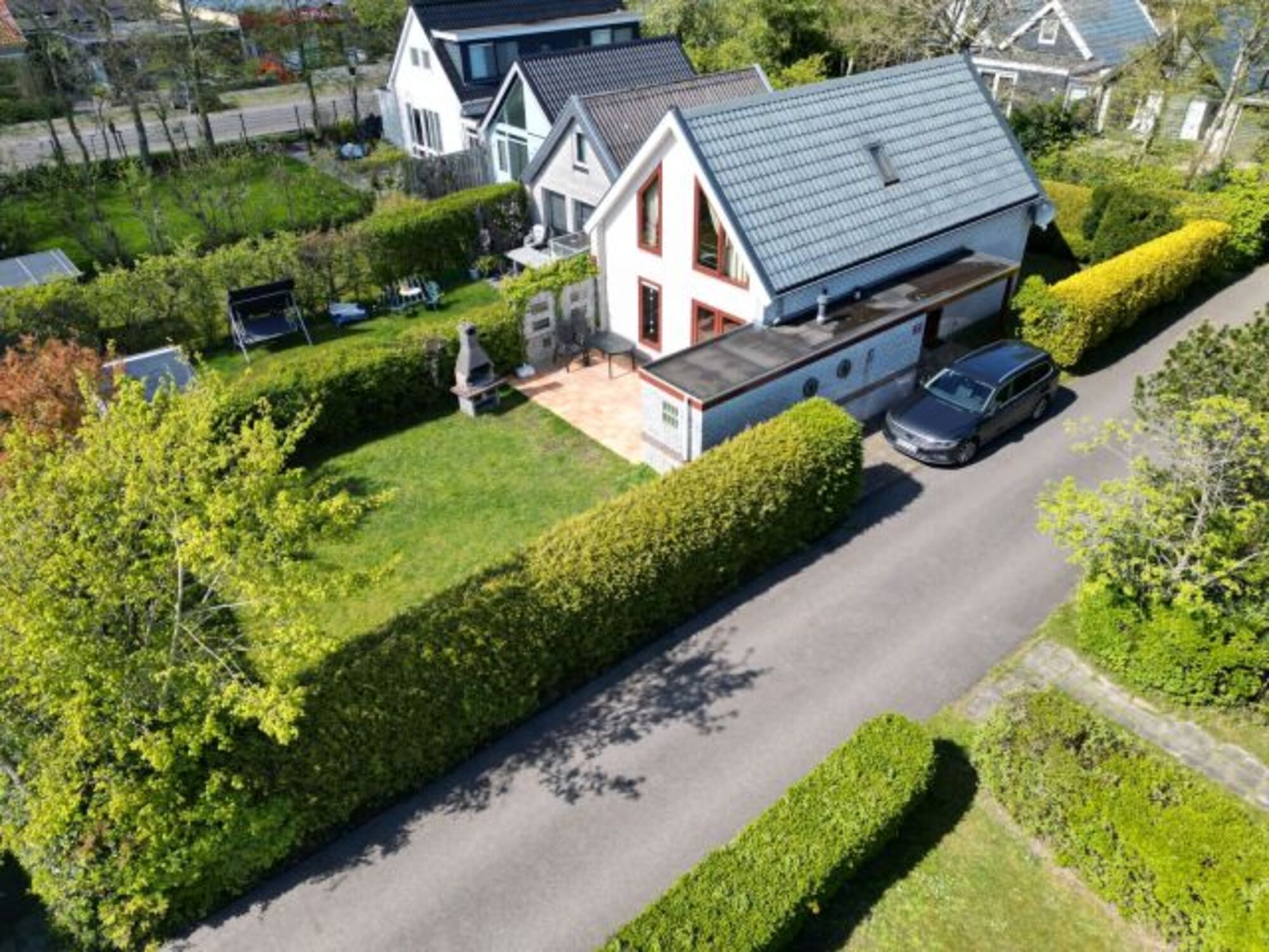 Zum Haus gehört ein ca. 200qm großer, eingezäunter Garten mit Südterrasse. Hier sind Gartenmöbel, Liegen und ein Grill vorhanden.
