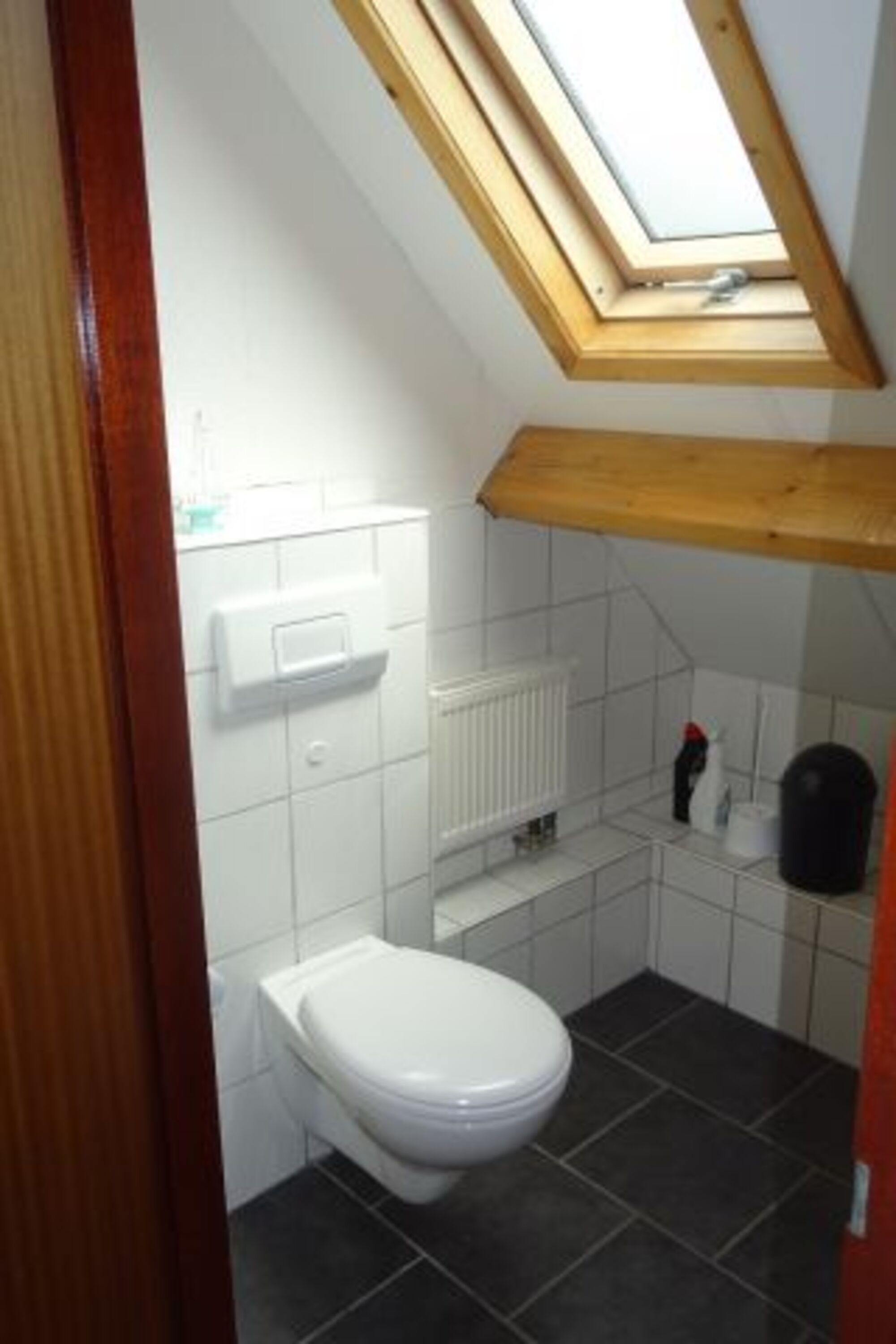 Im zusätzlichen Badezimmer ist ein WC und ein Handwaschbecken.