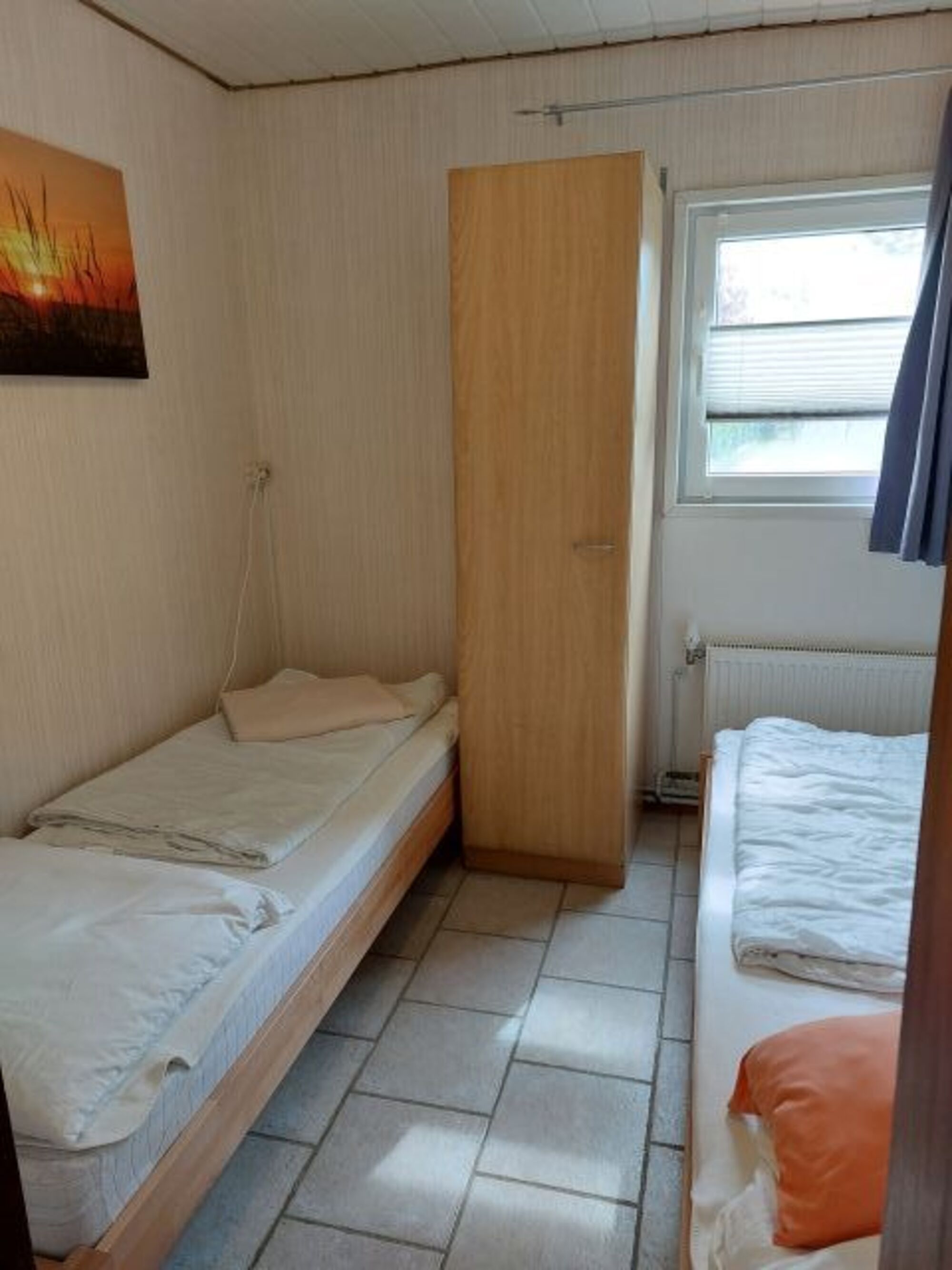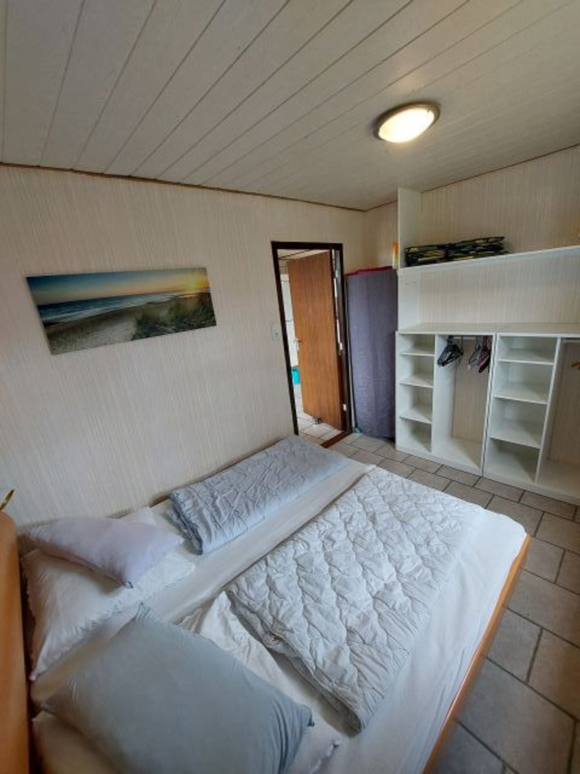 Ein Schlafzimmer mit Doppelbett 2 x 90x200m und Schrank.
