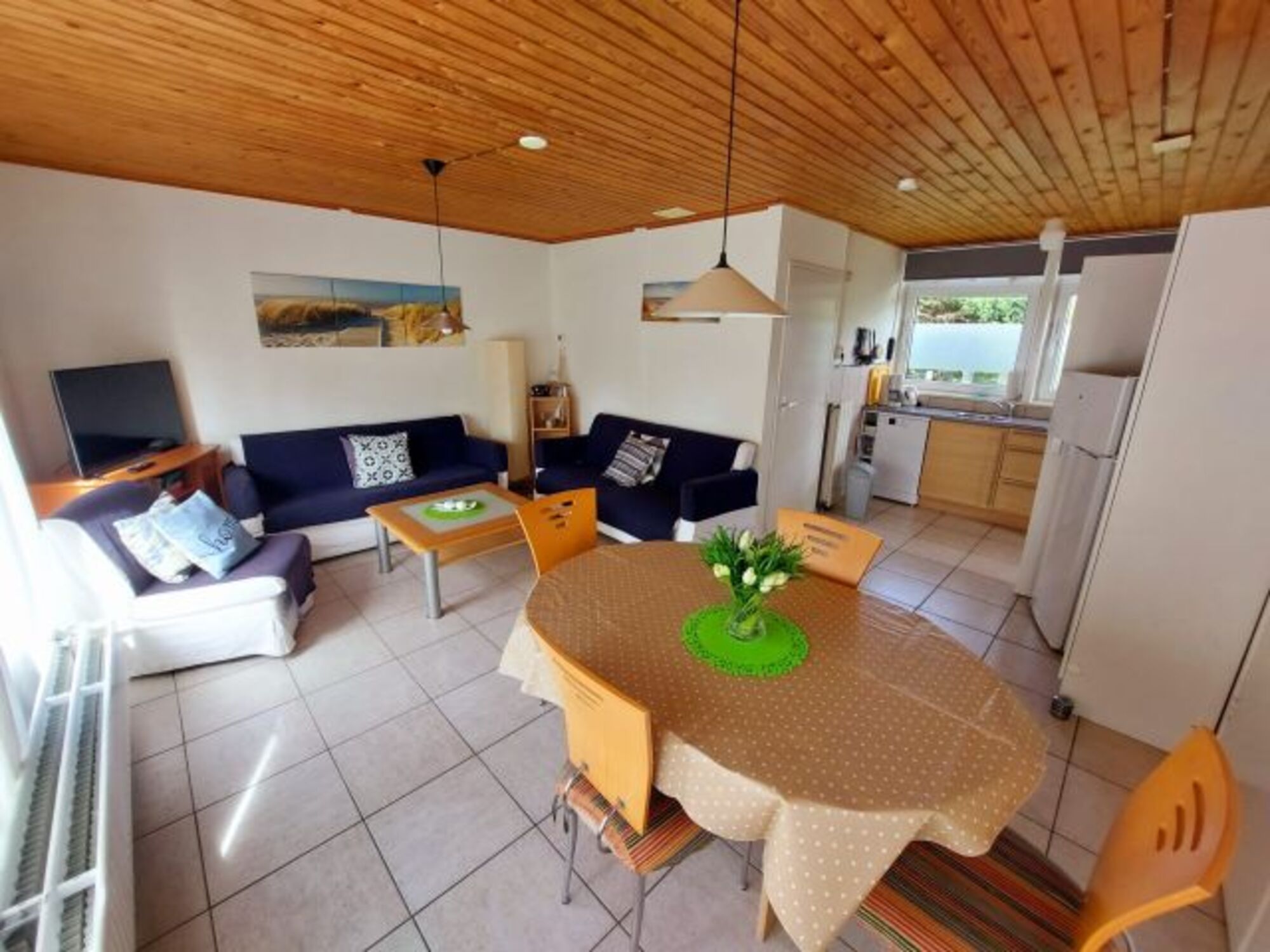 Es verfügt über einen offenen Wohnraum mit Küchenzeile, Essplatz, Sitzecke, 3 Schlafzimmern, einem Bad (mit Dusche) sowie einer Gäste Toilette.