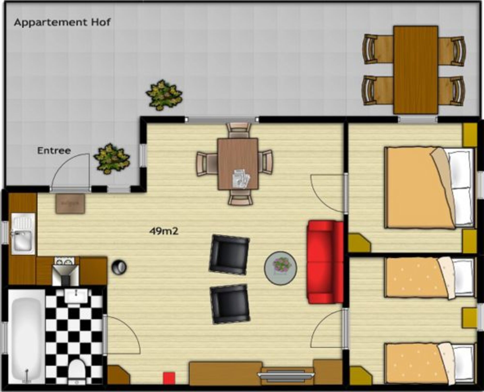 Sonniges Apartment in stilvollem Bauernhof bei Den HoornDie Küche des Hof-Apartments ist mit einer Kombimikrowelle, Kühlschrank mit Gefrierfach, Geschirrspüler, Wasserkocher und Senseo ausgestattet. Das Wohnzimmer verfügt über eine Sitzecke mit TV. Es gibt auch einen Essbereich. Es gibt zwei Schlafzimmer, von denen eines über ein Doppel-Boxspringbett verfügt. Das andere Schlafzimmer hat zwei einzelne Boxspringbetten. Das Badezimmer verfügt über eine Badewanne und eine Toilette. Appartement Hof verfügt über eine Terrasse.