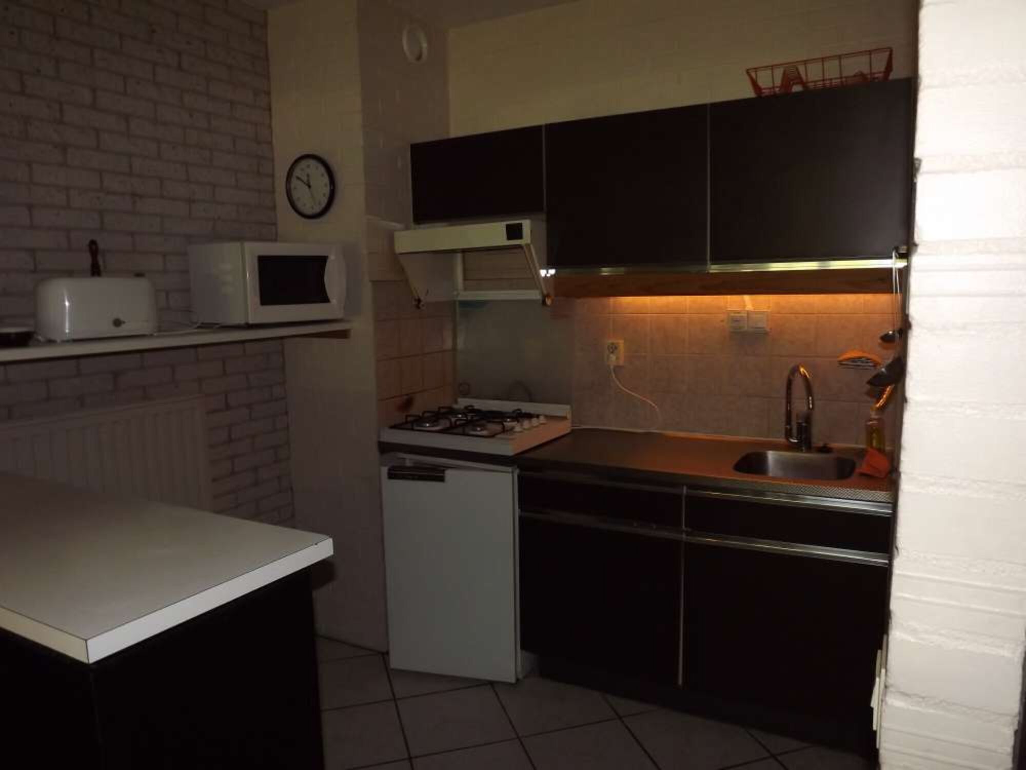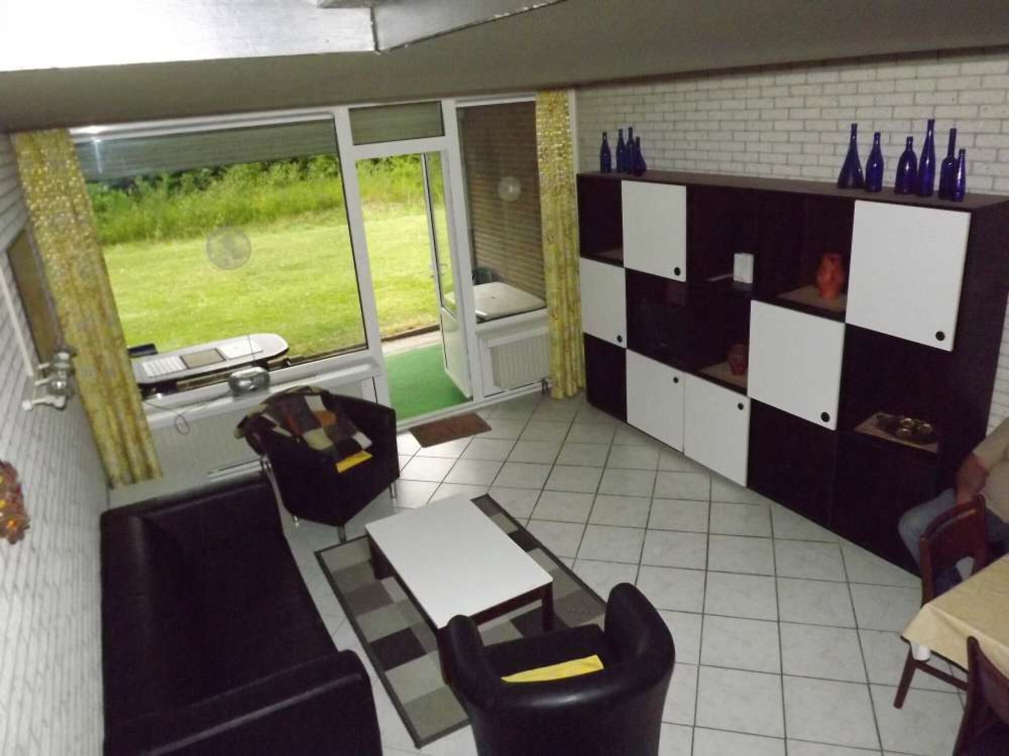 Auf der unteren Ebene befindet sich ein Essbereich und Küche und einem Aufgang zu den Schlafräumen. Die Küche, hat einen 4-Plattenherd, Kühlschrank, Gefrierfach, Mikrowelle, Kaffeemaschine, Toaster, Wasserkocher und Geschirr für 8 Personen. Für die kleinen Gäste steht auch noch ein Kinderhochstuhl zur Verfügung. Überdachte Terrasse mit Gartenmöbeln, Sonnenschirm und Elektrogrill.