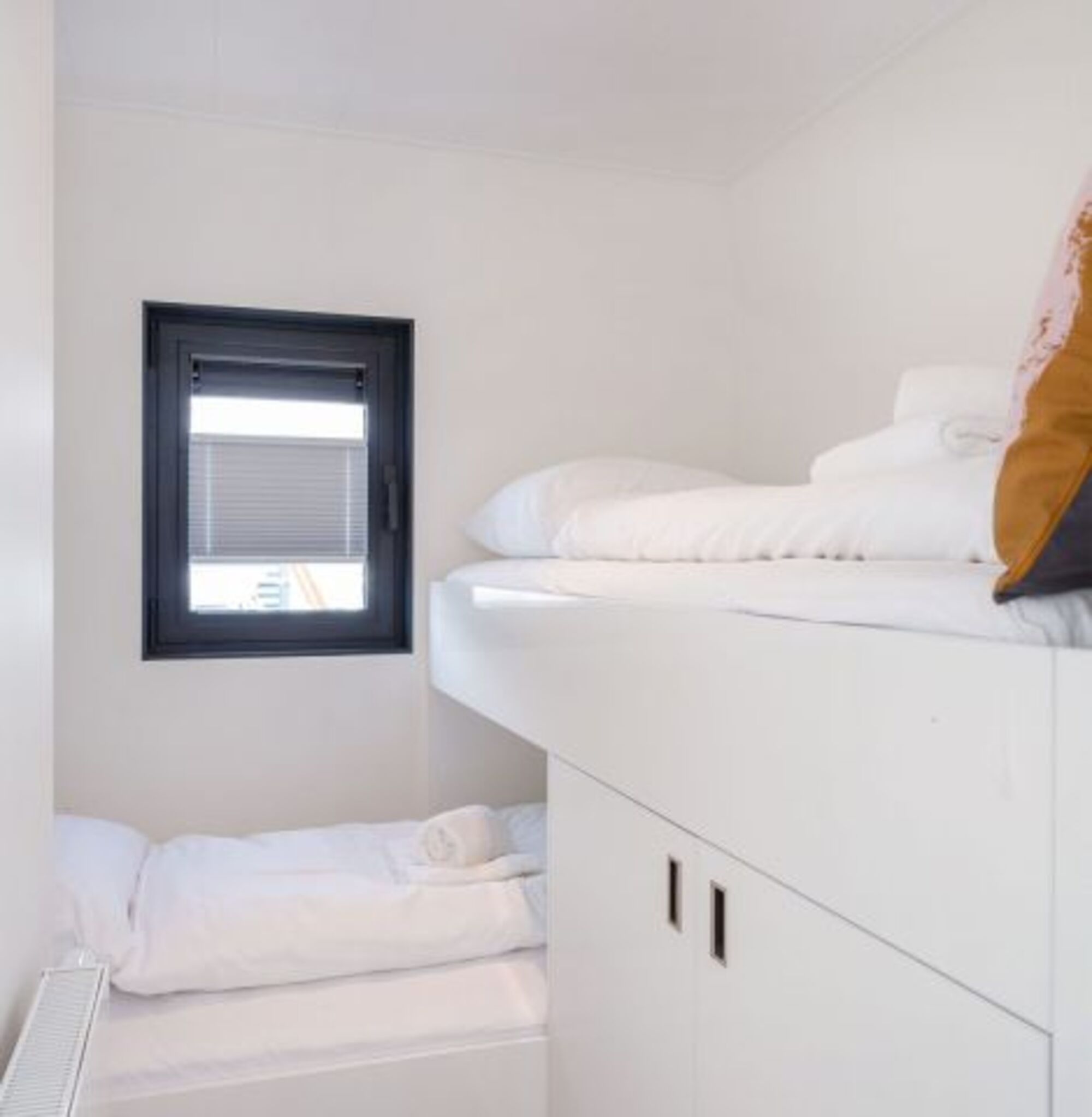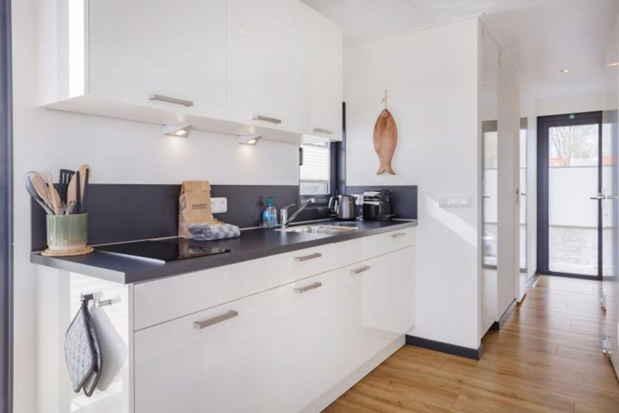 Das Hausboot ist von Wasser umgeben und bietet den Komfort eines luxuriösen Ferienhauses mit Garten. Der Wohnbereich ist in Sitzecke, Essecke und geräumige offene Küche unterteilt. Durch die großen Fensterfronten können Sie auch von innen die tolle freie Aussicht genießen. Die Ausstattung der Sitzecke besteht aus Eckbank, Couchtisch, Stuhl und Fernseher (Achtung, kein Senderpakkette). Die Küche ist mit einem Induktionskochfeld (2 Kochplatten), Kühlschrank mit Gefrierfach, Geschirrspüler, Backofen, Kaffeemaschine (Filterkaffee und Nespresso), Milchschäumer, Wasserkocher und Toaster bestückt. Darüber hinaus bietet sie viel Stauraum für Lebensmittel. Am runden Esstisch kann man gemütlich gemeinsam essen oder sich mit Brettspielen vergnügen.Diese Unterkunft hat zwei Schlafzimmer. Das große Schlafzimmer ist mit einem Doppelbett (160 x 200 cm) und Schrank zum Verstauen von Kleidung oder anderen Sachen ausgestattet. Das zweite Schlafzimmer ist mit einem gut eingepassten Etagenbett (80 x 200 cm) und einem Kleiderschrank eingerichtet. Für die Kleinen sind ein Kinderreisebett (60 x 120 cm) und ein Kinderhochstuhl vorhanden. Das moderne Badezimmer verfügt über Dusche, WC und Badezimmerschrank mit Spiegel. Zum Hausboot Agua Dolce gehört ein großzügiger Garten direkt am Wasser (ca. 100 m2). Im Garten kann man nach Herzenslust spielen und grillen oder sich zur Abwechslung auch einmal im Wasser abkühlen. Außerdem ist das Boot mit einer sehr geräumigen, über eine Wendeltreppe an der Rückseite erreichbaren Dachterrasse/einem großen Sonnendeck von ca. 20 m2 Größe ausgestattet. Malen Sie sich schon aus, wie Sie von der Loungeecke aus die weite Aussicht genießen? Des Weiteren gehört zu dem Boot noch eine Terrasse an der Vorderseite (8 m2) und eine Terrasse an der Rückseite (6 m²).