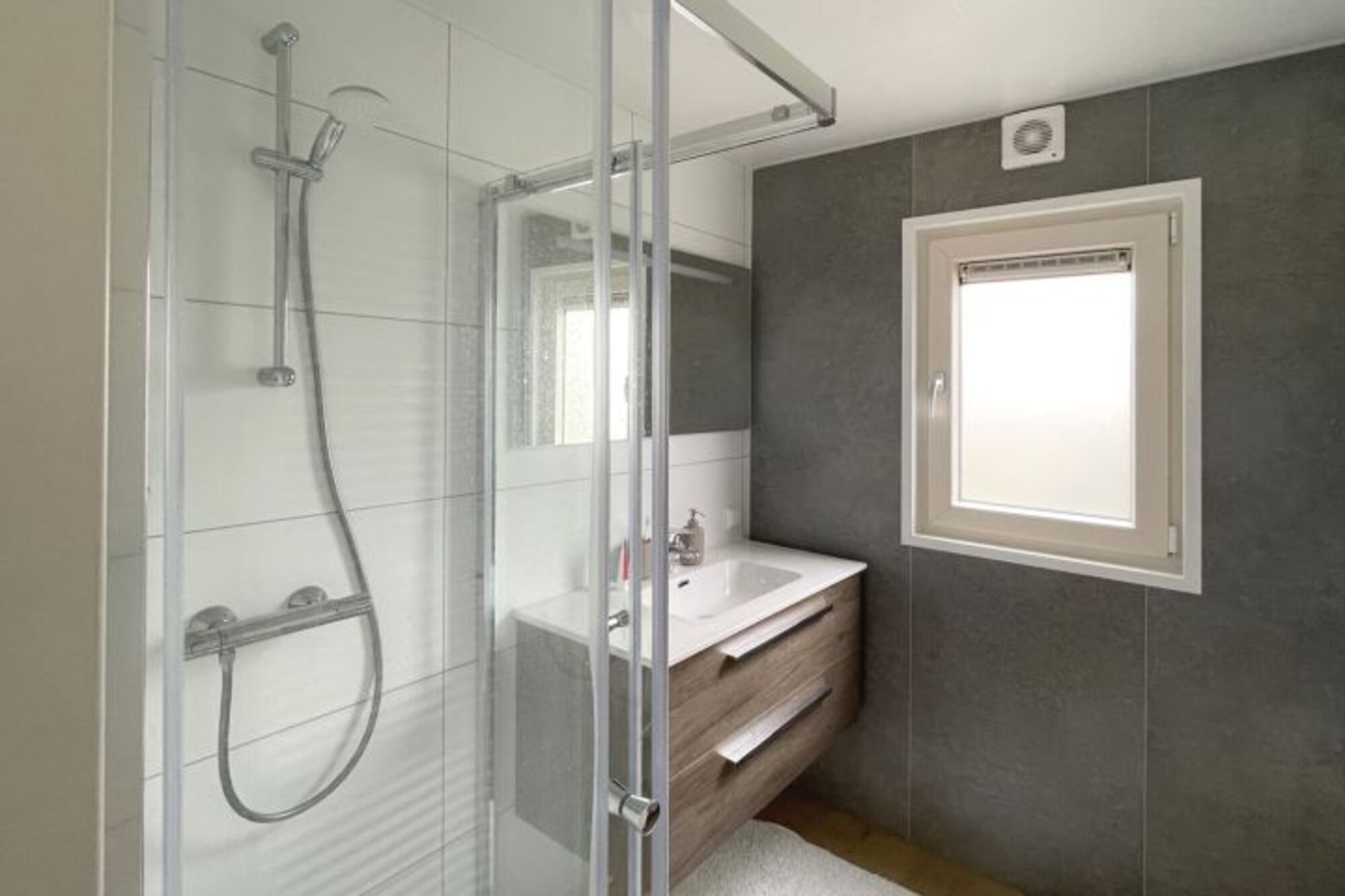 Mit drei komfortablen Schlafzimmern bietet dieses Haus Platz für sechs Personen. Das erste und zweite Schlafzimmer haben ein geräumiges Doppelbett und das dritte Schlafzimmer hat zwei Einzelbetten. Es gibt viel Stauraum in jedem Schlafzimmer. Das Badezimmer ist modern und verfügt über eine Dusche, Waschbecken und WC, und es gibt ein weiteres separates WC. Ihr Auto können Sie auf dem geräumigen Parkplatz parken, wo es auch eine Ladestation für Elektroautos gibt.