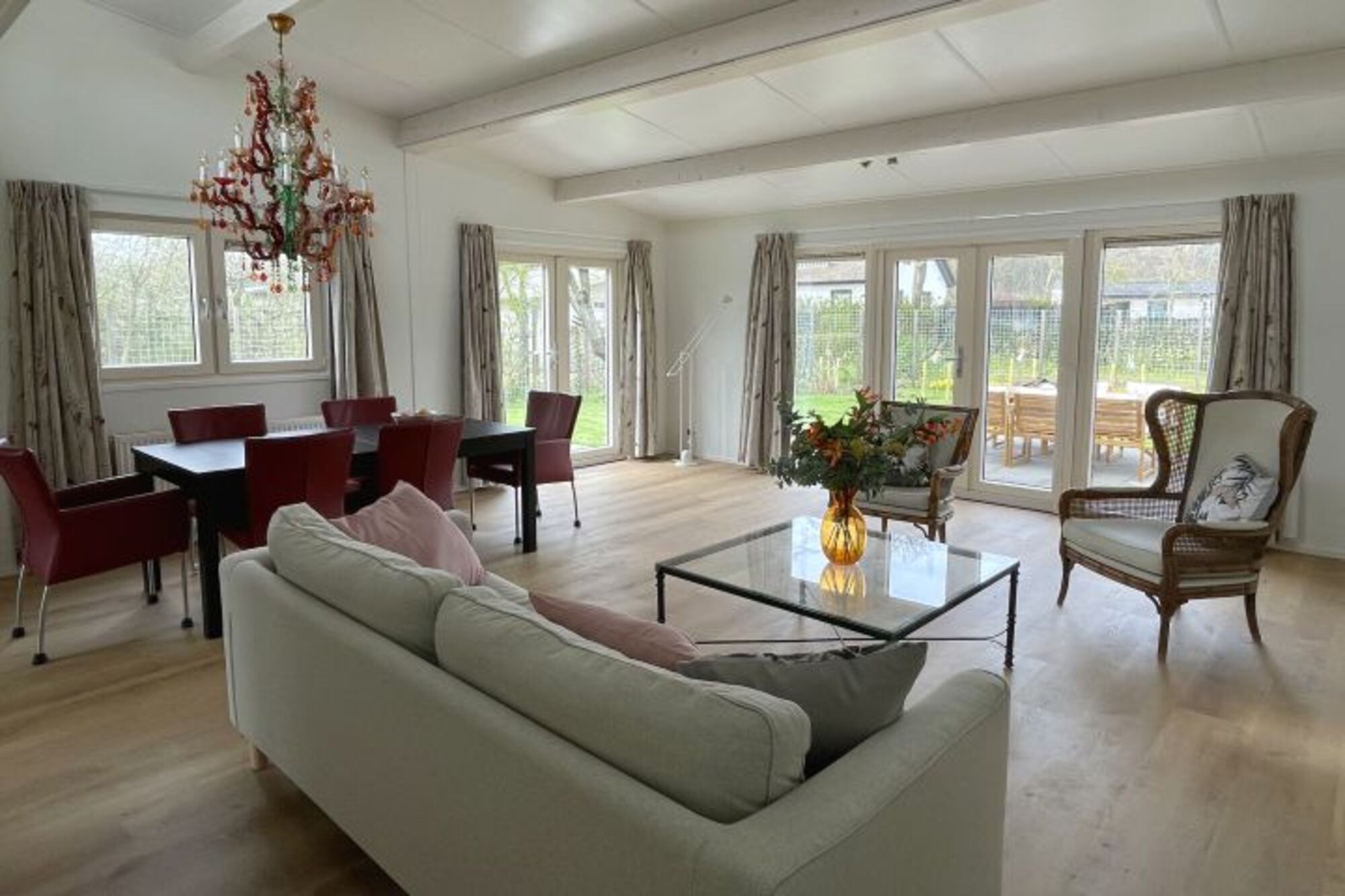 In der Nähe des schimmernden Meeres liegt das Chalet MarBrilliante. In einem kleinen, ruhigen Ferienpark steht dieses schöne, geräumige 6-Personen-Ferienhaus. Hier können Sie im großen Garten mit verschiedenen Sitzgelegenheiten die frische Luft genießen und entspannen.Sie betreten ein geräumiges Wohnzimmer, in dem mit viel Liebe zum Detail und Farbe viel Komfort auf Sie wartet. Über dem geräumigen Esstisch für 6 Personen hängt ein farbenprächtiger Kronleuchter. Die Dachschräge im Wohnzimmer hat Fenster und mit den Fenstertüren und Fenstern an der Seite hat der Raum viel Tageslicht und geht nahtlos von innen nach außen über. Die Küche ist modern und verfügt über eine Spülmaschine und einen Backofen.