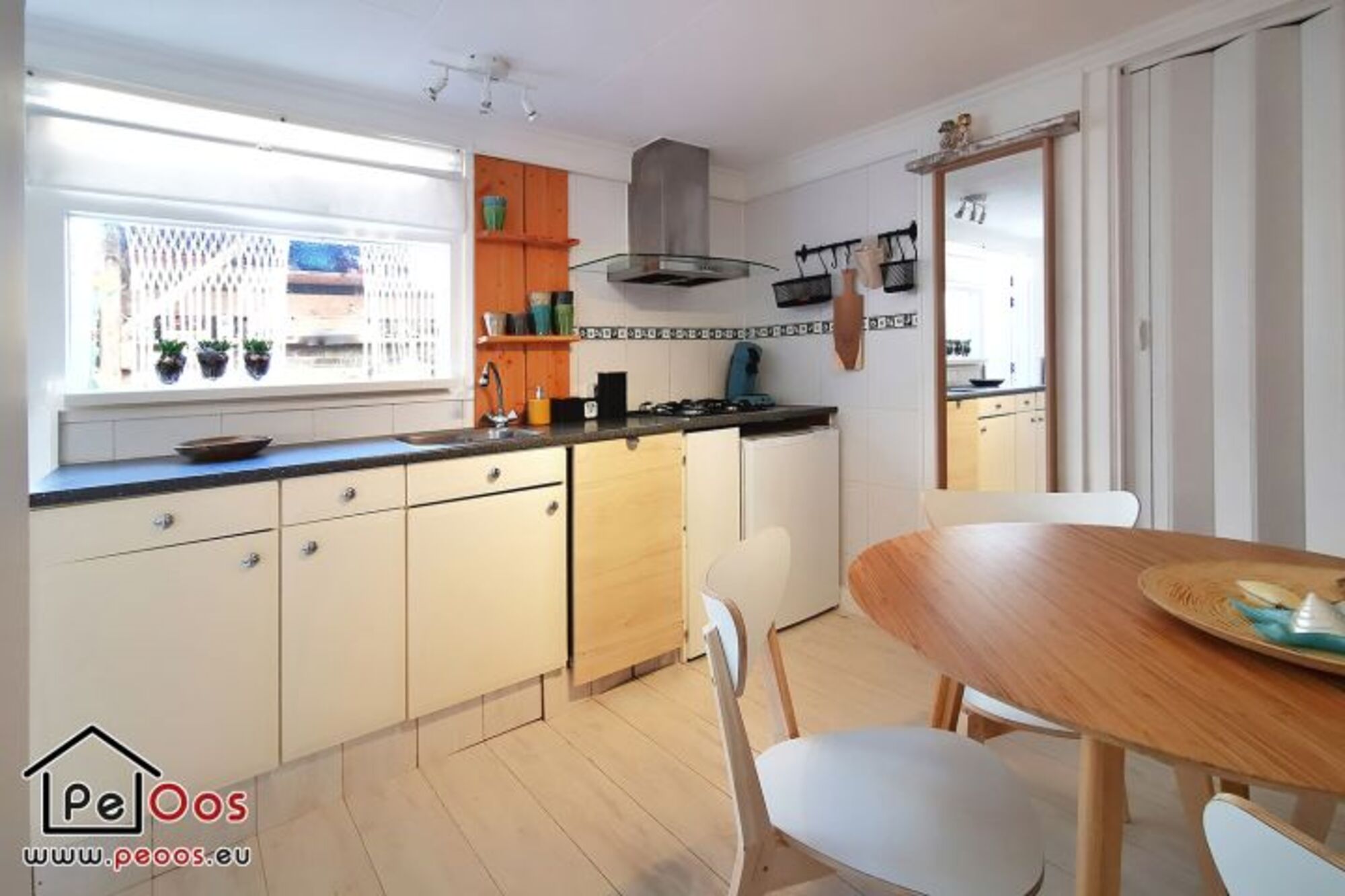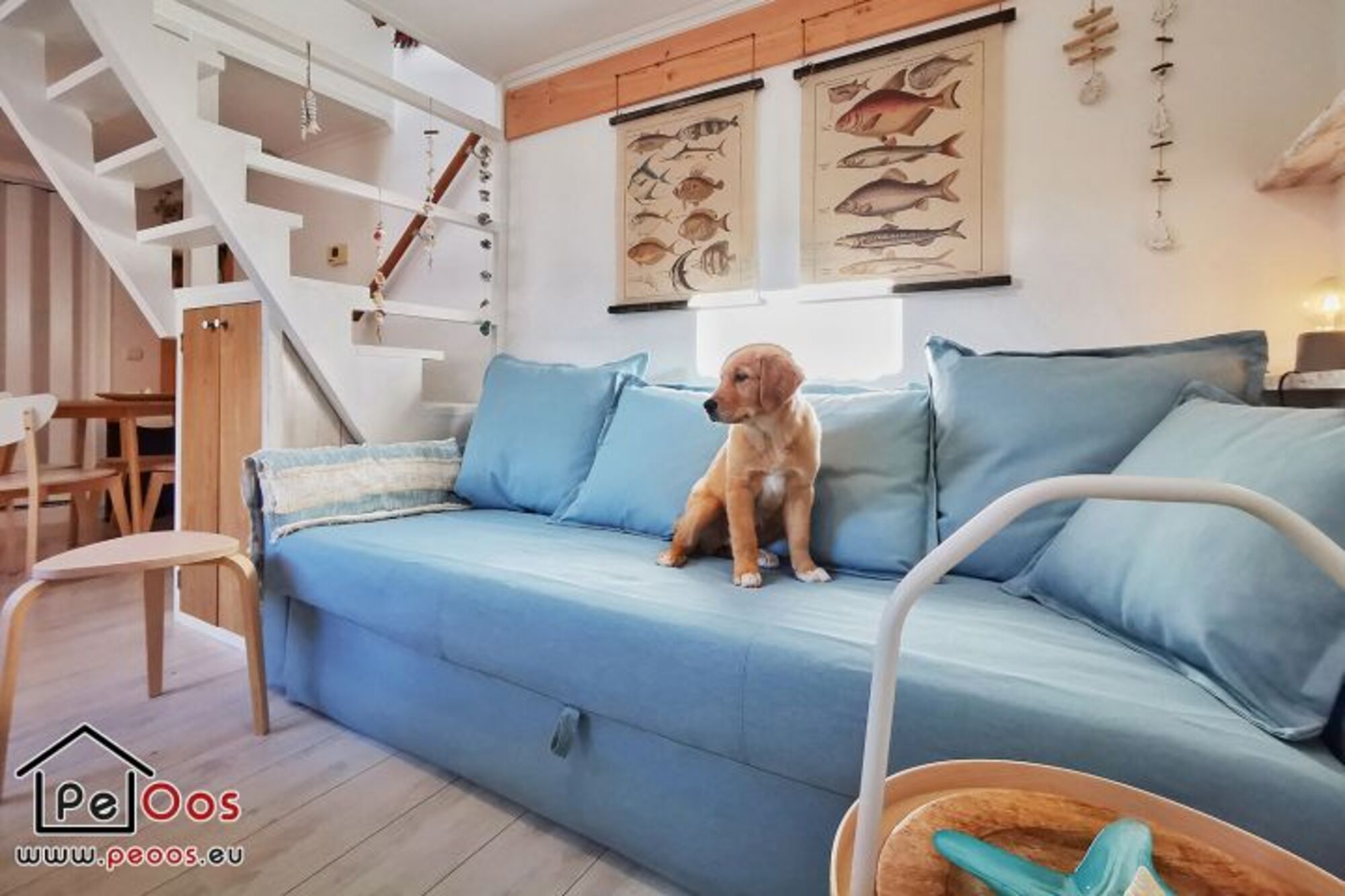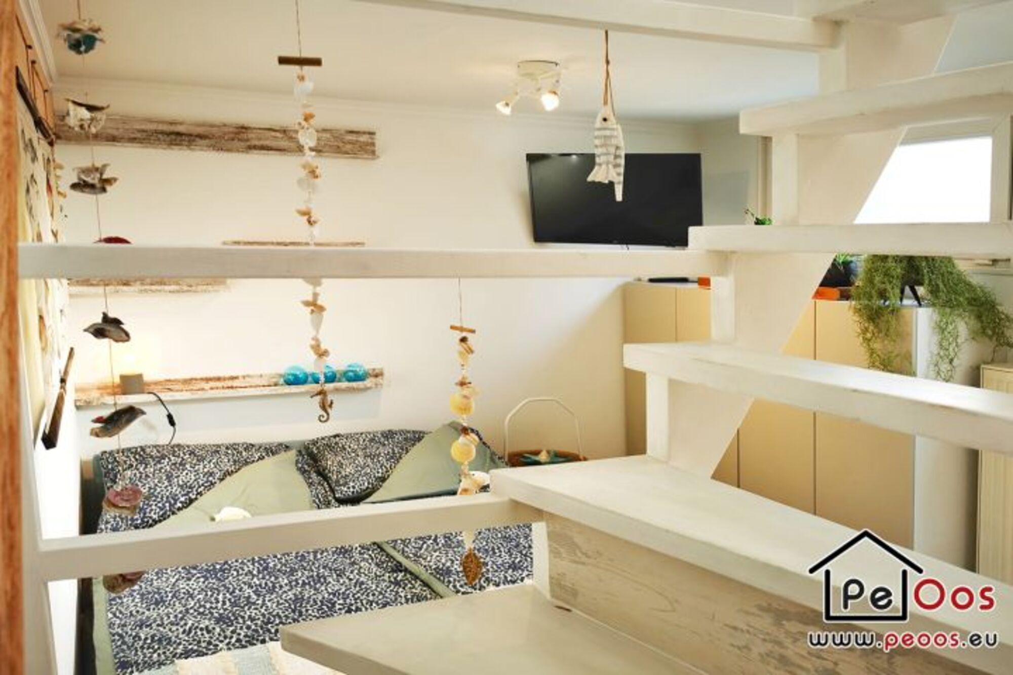 Das Wohnzimmer ist wunderbar hell, mit einem Schlafsofa, einem Flachbildschirm und einem runden Esstisch ausgestattet. Die Küche ist modern und verfügt über einen Geschirrspüler. Im Erdgeschoss befindet sich das Badezimmer mit Dusche, Waschbecken und Toilette. Außerdem gibt es einen Handtuchwärmer und einen Haartrockner.
