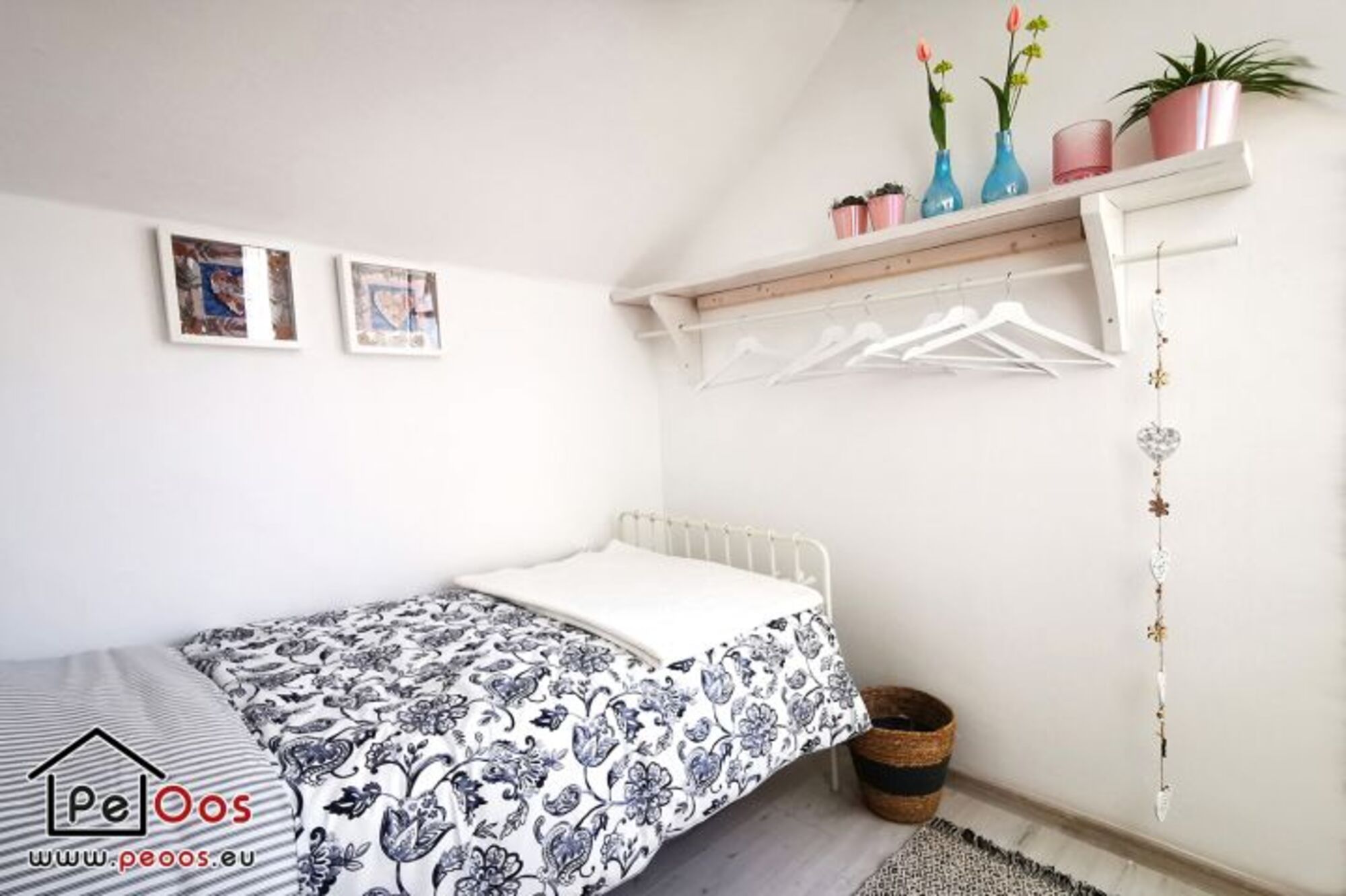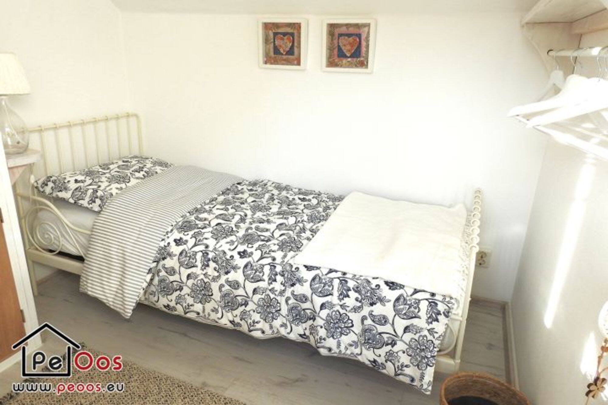 Die Treppe führt Sie in das Obergeschoss, wo sich zwei Schlafzimmer befinden. Das erste Schlafzimmer hat ein bequemes, geräumiges Doppelbett und das zweite Schlafzimmer ein Einzelbett.
