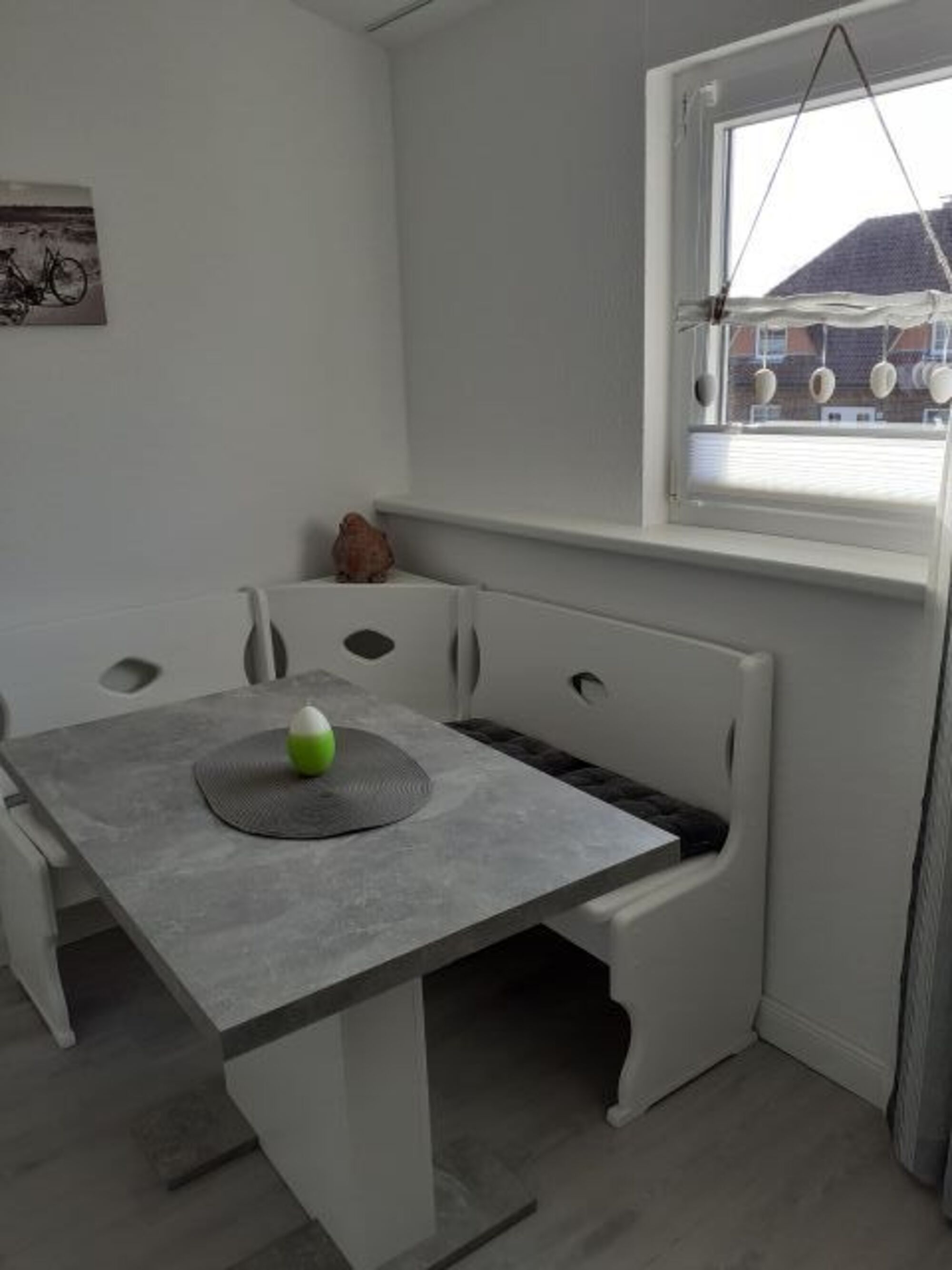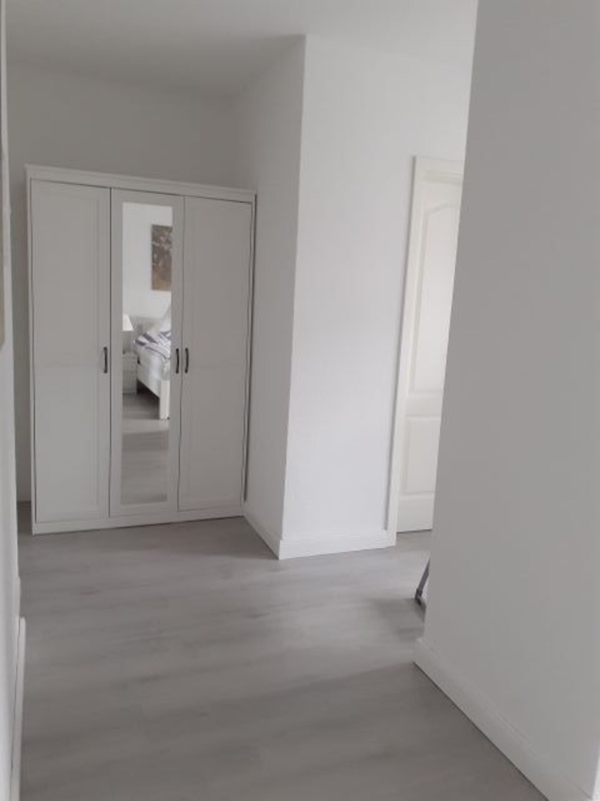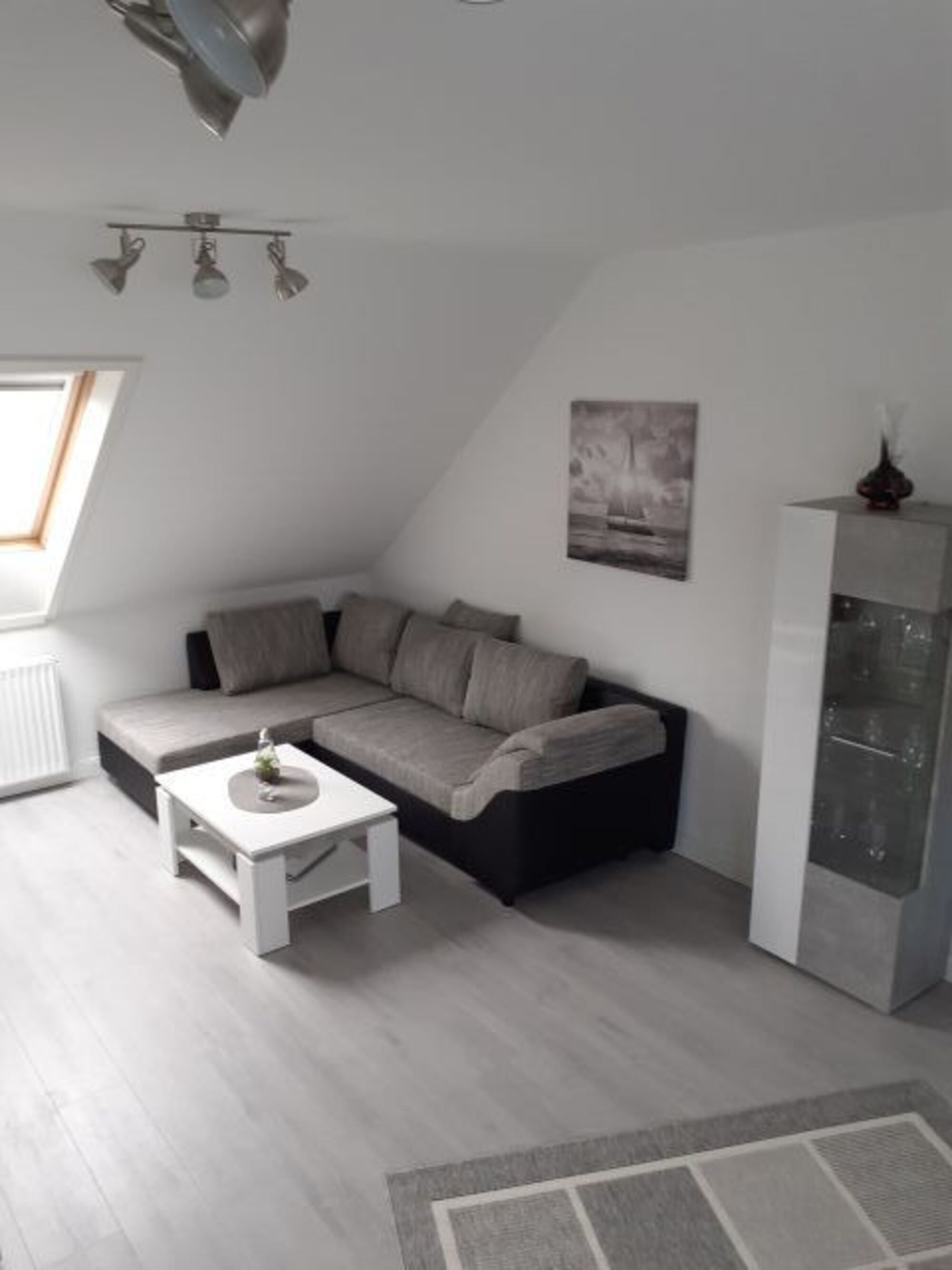 Die Ferienwohnung ist in den Farben grau-weiß im Jahr 2020 entstanden und komplett saniert.