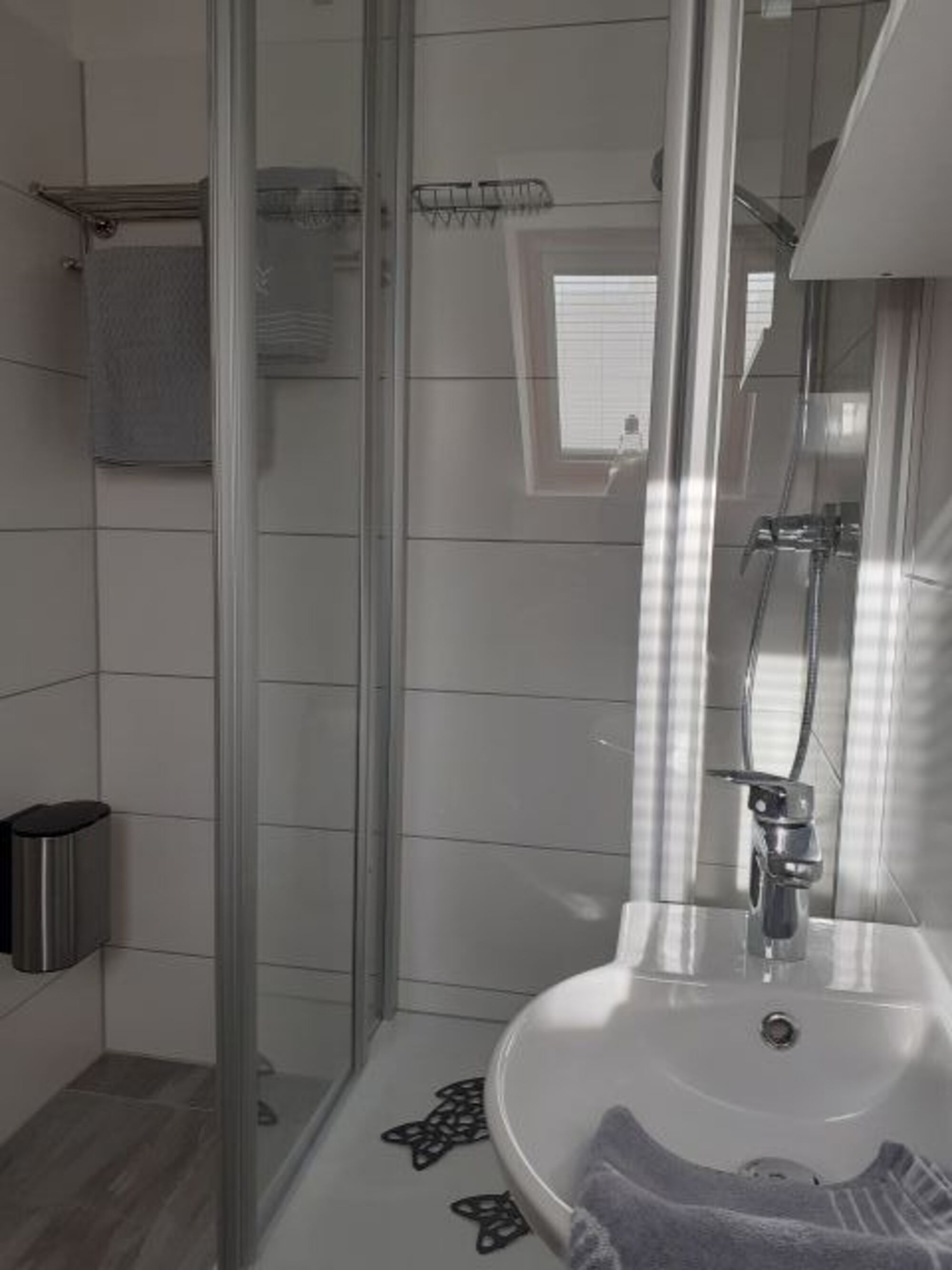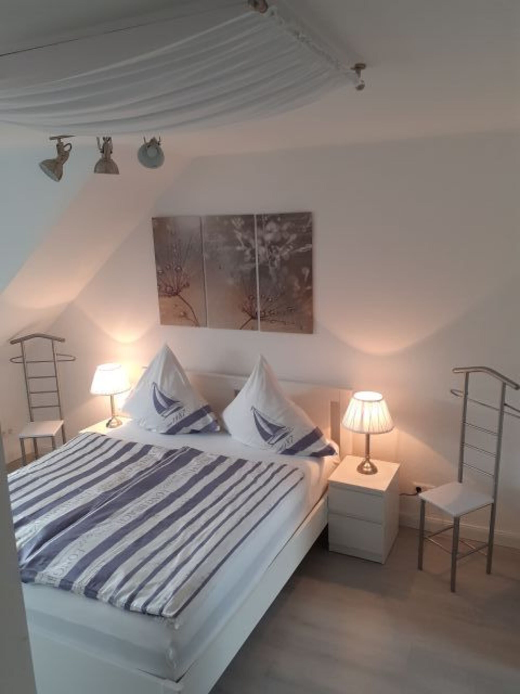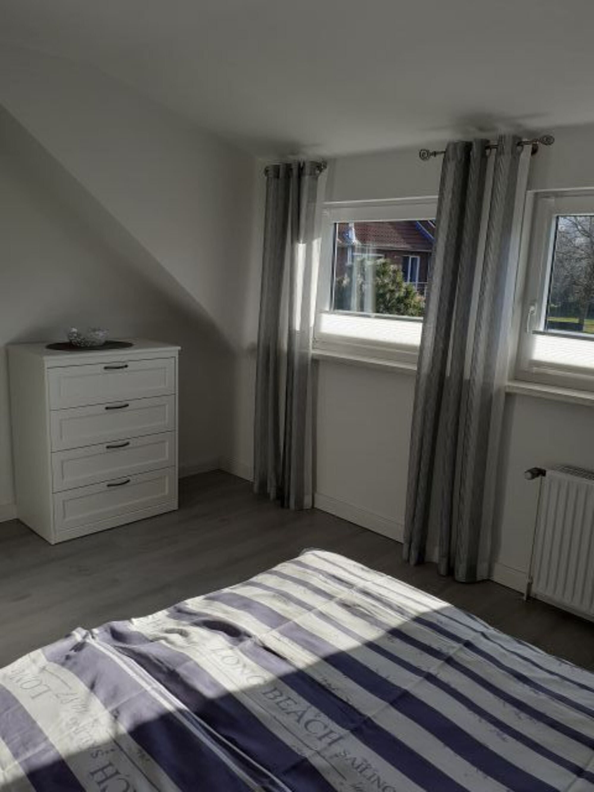 Die Ferienwohnung ist in den Farben grau-weiß im Jahr 2020 entstanden und komplett saniert.