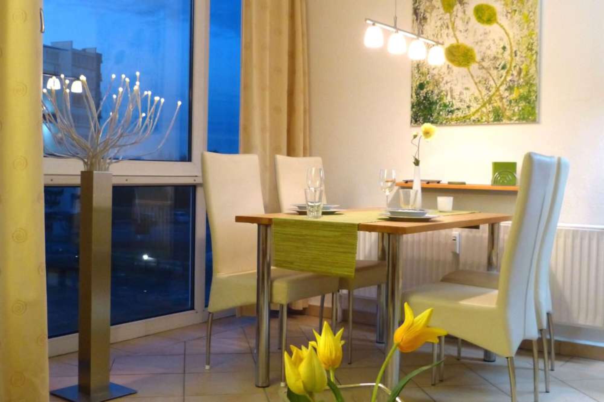 Essplatz vor dem großen Panoramafenster mit seitl. Seesicht.