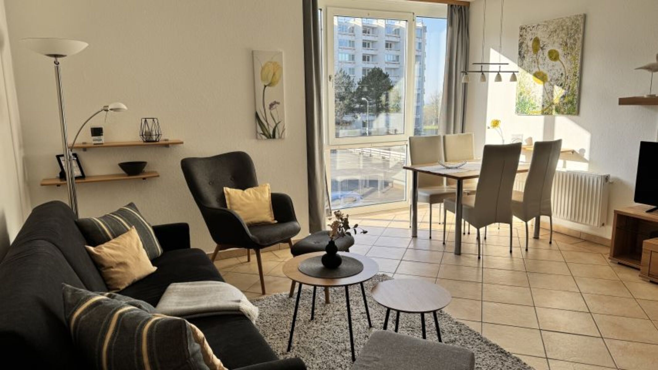Gemütliche moderne strandnahe Ferienwohnung mit Seesicht im 2. OG des Hauses Passat in Cuxhaven-Döse nur ca. 150 m vom Strand der Nordsee entfernt. Schwimmbad und Sauna direkt im Haus.2 Zimmer - für 1-4 Personen.