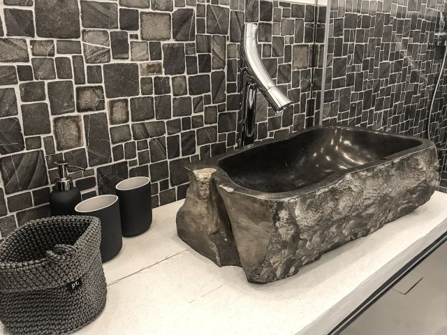 Ihr kleines, aber sehr feines Bad verwöhnt Sie mit einem hinterleuchteten LED Wandspiegel, einer Hans Grohe Design Waschtischarmatur, einem besonderen Steinwaschtisch, großer Regendusche, Villeroy&Boch WC sowie einem Badheizkörper - so lässt es sich perfekt in den Tag starten.