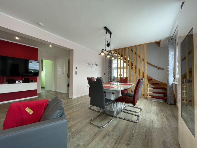 Die ca 120qm große komplett kernsanierte Haus steht in dem schönen Klosterort Walkenried im Harz ca 5km von Bad Sachsa entfernt. Bäcker,Metzger, Restaurants, der Bahnhof und ein Badeteich (800m) sind fußläufig zu erreichen.Es bietet Platz für bis zu 8 Personen. Auf 3 Etagen finden sie alles was Sie brauchen um einen erholsamen Urlaub bei uns zu verbringen. Das Ferienhaus ist eine Doppelhaushälfte mit großem Garten und separatem Eingang.